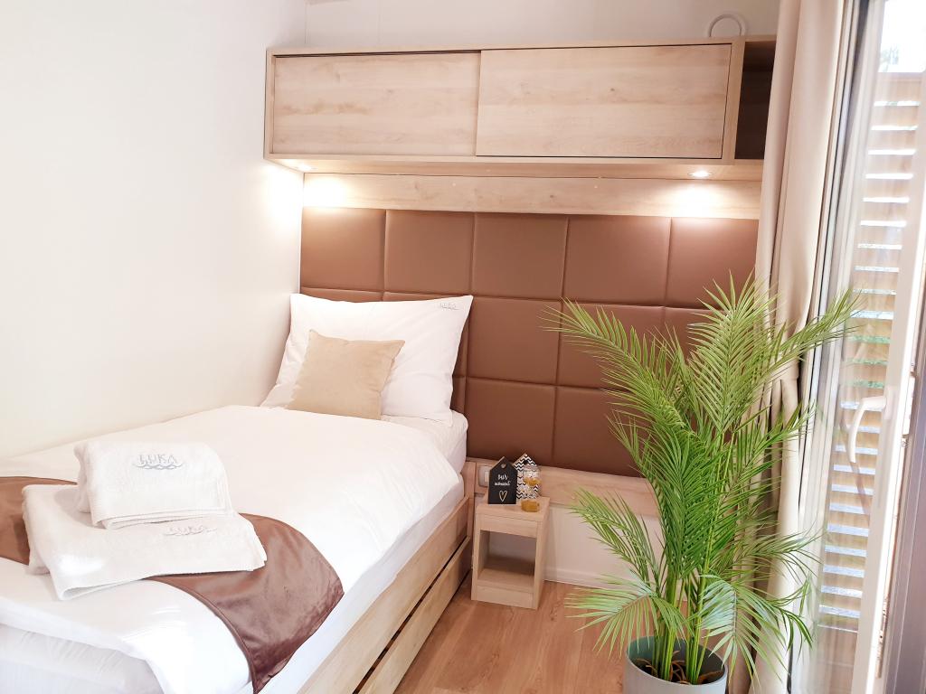 Nové, moderní a plně vybavené mobilní domy nacházející se v Camp Soline, Biograd na moru! Chaty jsou asi 3 minuty chůze od oblázkové pláže a asi 5 minut chůze od písečné pláže, také 10 minut chůze do centra Biogradu podél promenády plné obsahu pro všechny věkové kategorie! V kempu se nachází obchod, pekařství, restaurace, bar, dětské parky, prádelna, zařízení pro rekreaci. ,