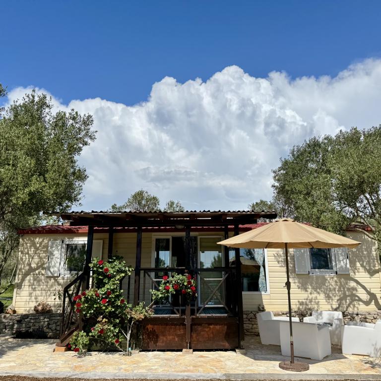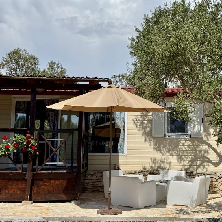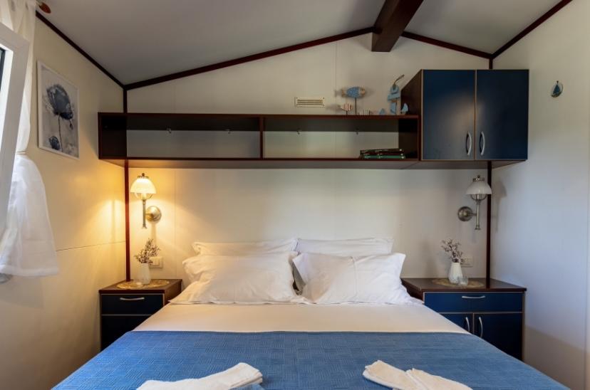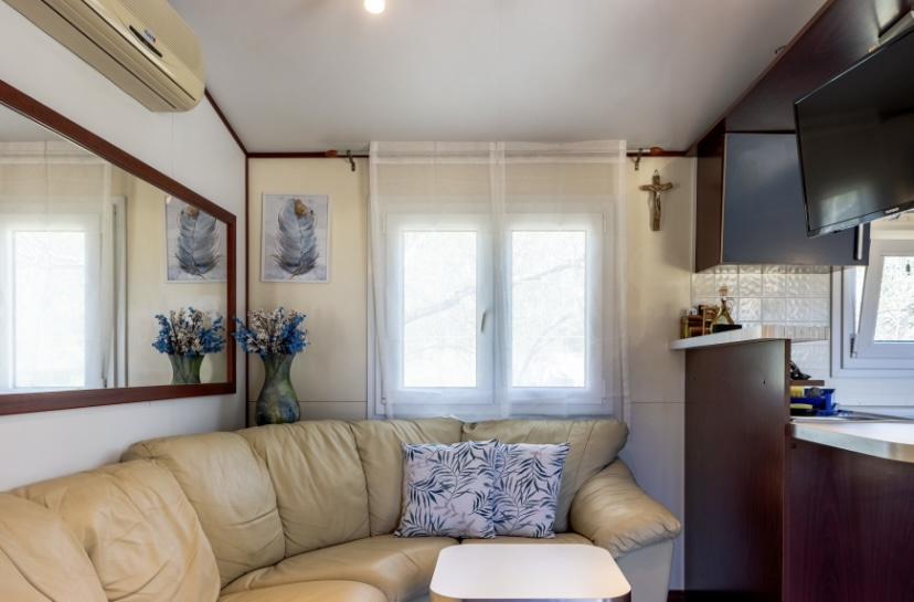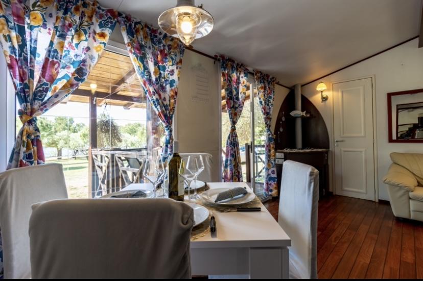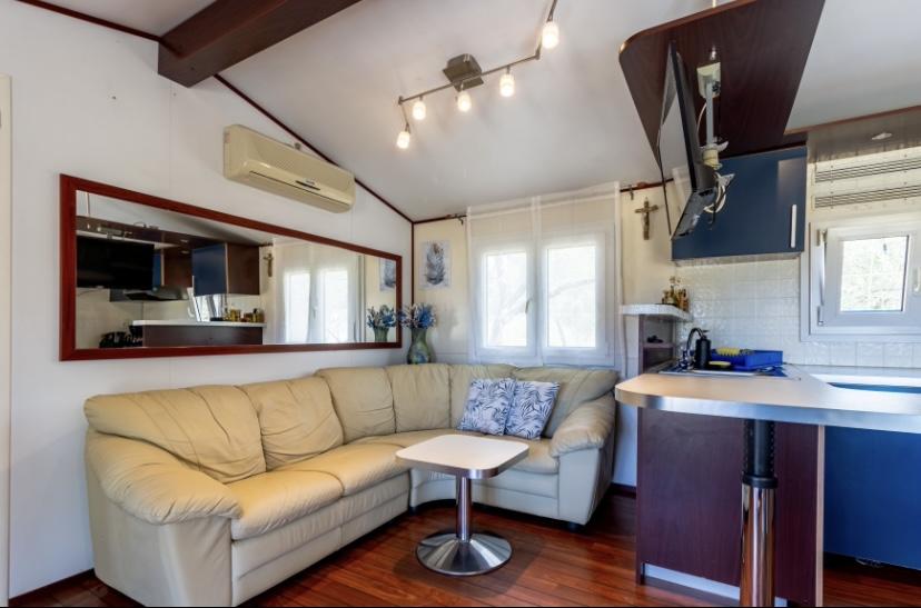 Mobilní dům se nachází v kempu Bakija, 40 m od moře, se snadným přístupem na pláž Nedaleko pláže Soline, 2-3 minuty pěšky, 1 minutu chůze na trh Studenac a 7-8 minut pěšky. pěšky do centra Plně vybavená zahrada, kuchyně, pohodlný obývací pokoj. Vlastní venkovní gril v rámci chaty a vlastní venkovní sprcha. Zařízení je pro 4 osoby, 2 pokoje, 2 koupelny, z toho jedna koupelna s masážní vanou. Prostorná terasa, ideální pro příjemný pobyt s výhledem na moře a krásné západy slunce.