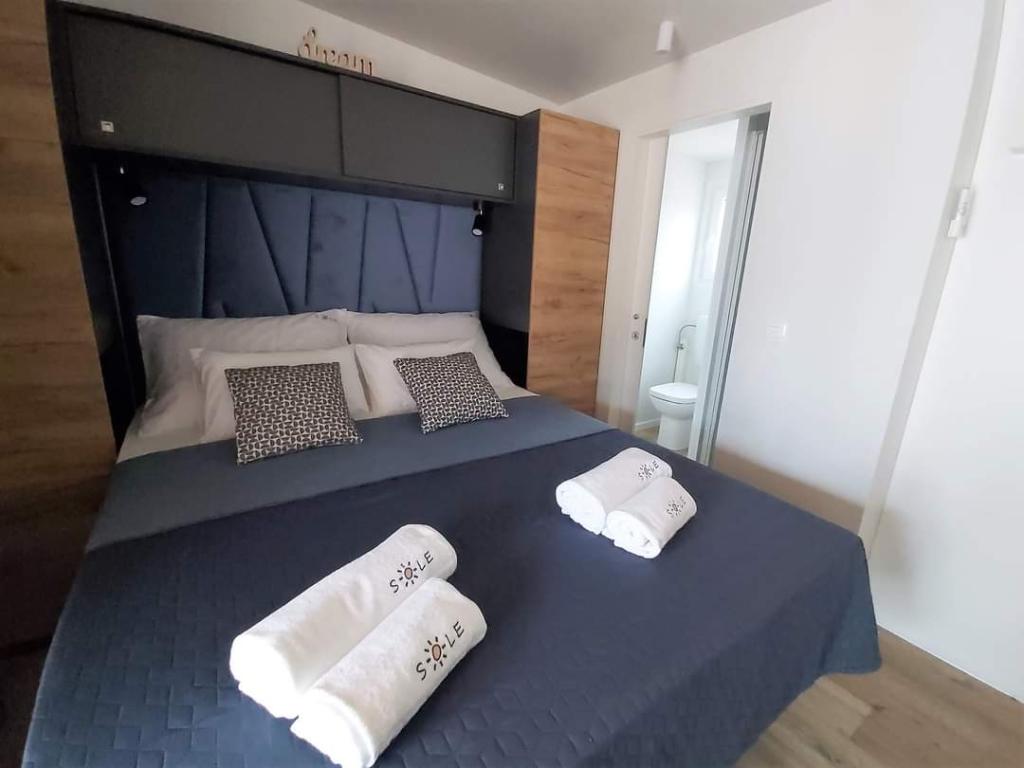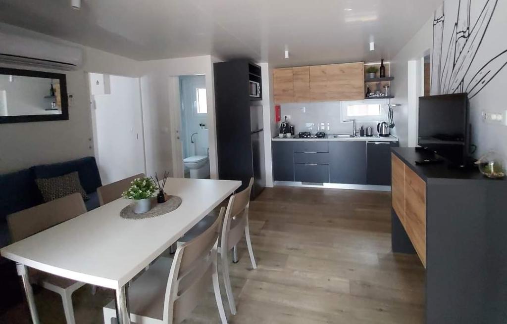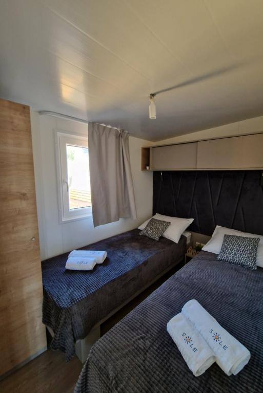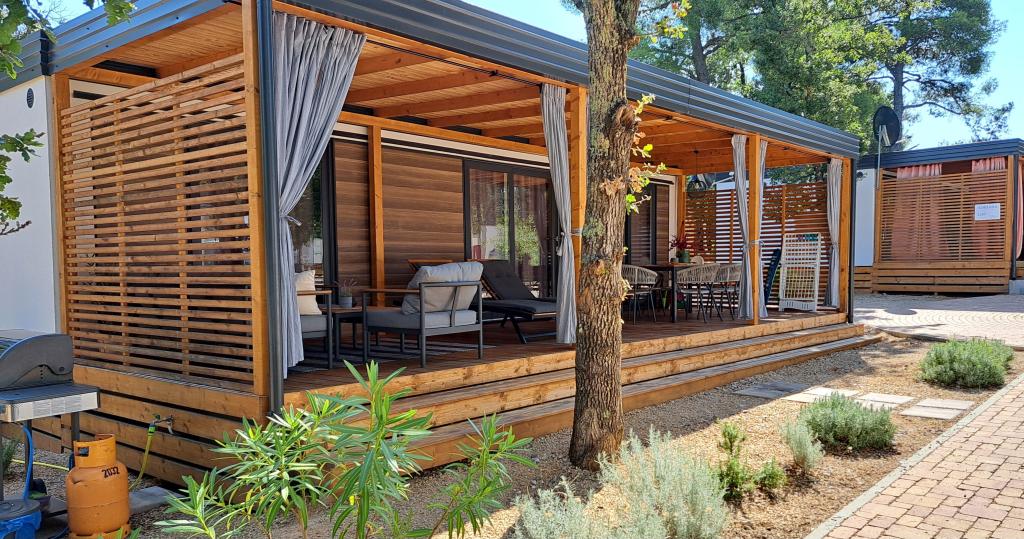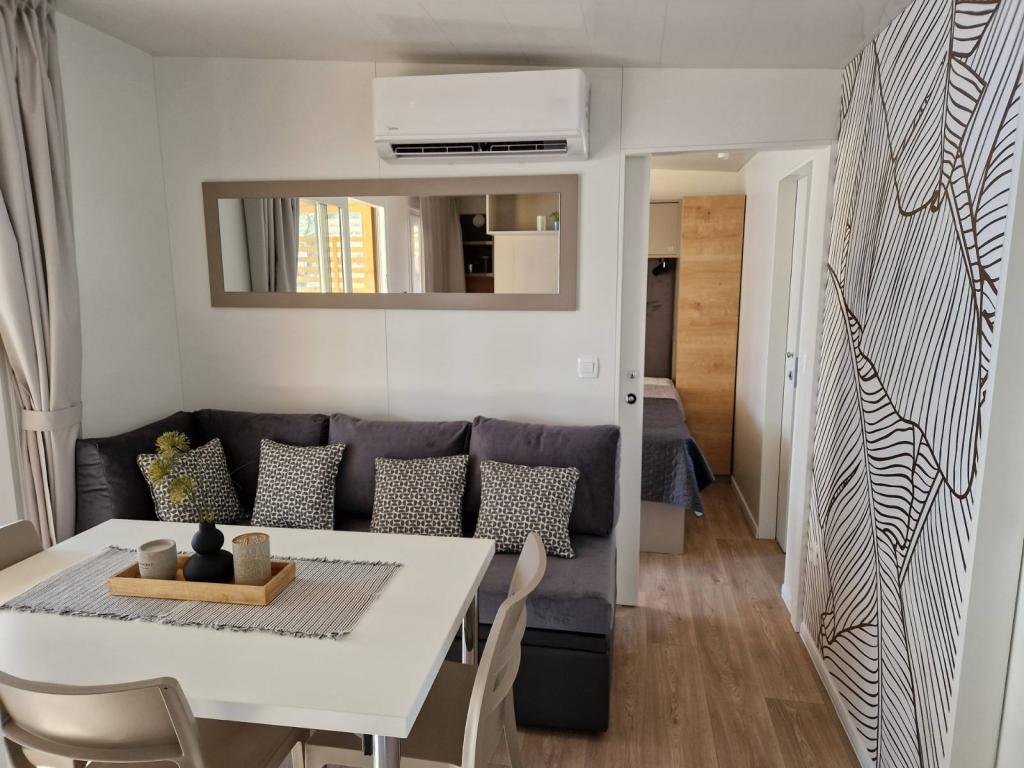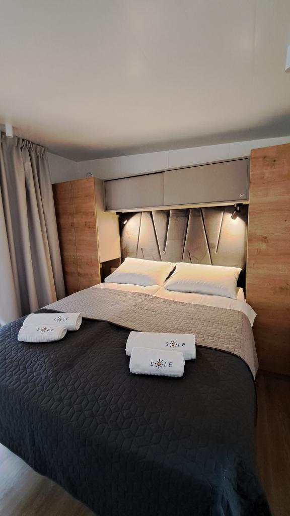 Mobile Home Soles jsou nové, moderně vybavené mobilní domy. Nacházejí se v borovém lese v klidné části kempu Park Soline v krásném Biogradu na Moru. Jsou 5 minut chůze od pláže, obchodů, restaurací a promenády u moře. Mobilní dům Sole 6+2 je pro maximálně 8 osob a má 3 ložnice, 2 koupelny a mobilní dům 4+2 je pro maximálně 6 osob a má 2 ložnice a 2 koupelny. Chatky mají obývací pokoj, plně vybavenou kuchyň, velkou terasu, salonek, venkovní solární sprchu a 1 parkovací místo, WiFi zdarma, SAT, Smart TV, klimatizaci, ručníky, ložní prádlo, myčku nádobí, mikrovlnnou troubu, kávovar, toustovač , vysoušeč vlasů. , žehlička. Kemp nabízí mnoho zařízení pro celou rodinu: krásné písečné a oblázkové pláže, které se táhnou až do centra města, restauraci se středomořskými specialitami, dětské hřiště, animační program a sportovní aktivity. Kemp je navíc ideálním výchozím bodem pro poznávání okolí a návštěvu atraktivních národních parků.