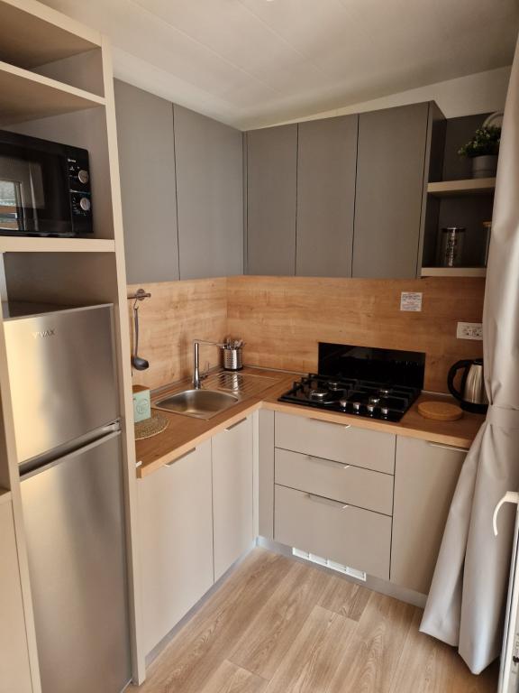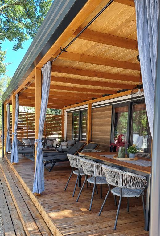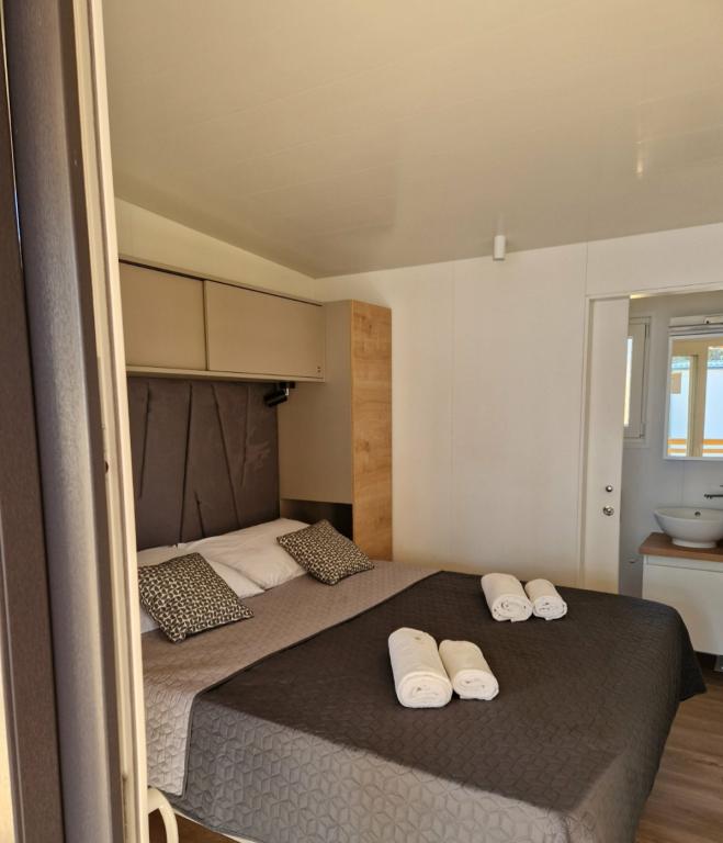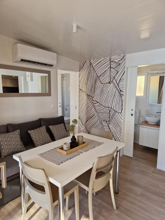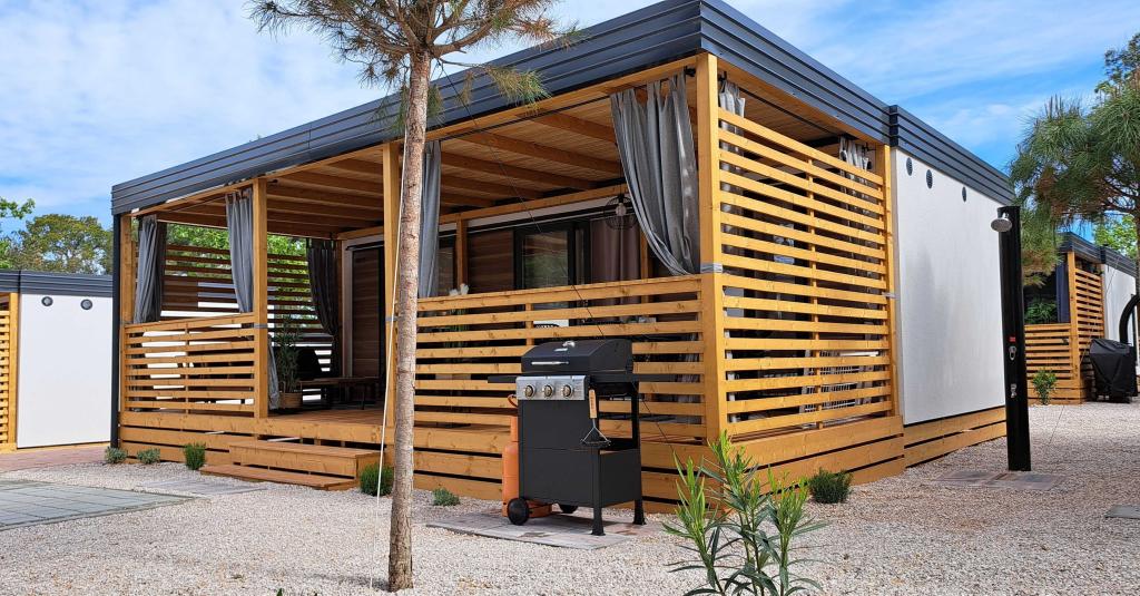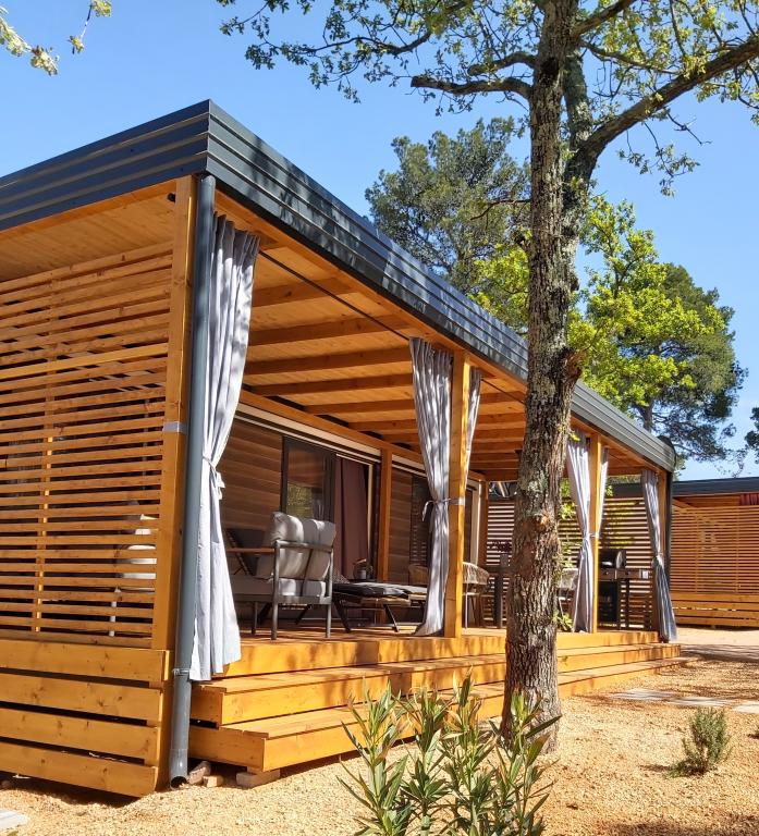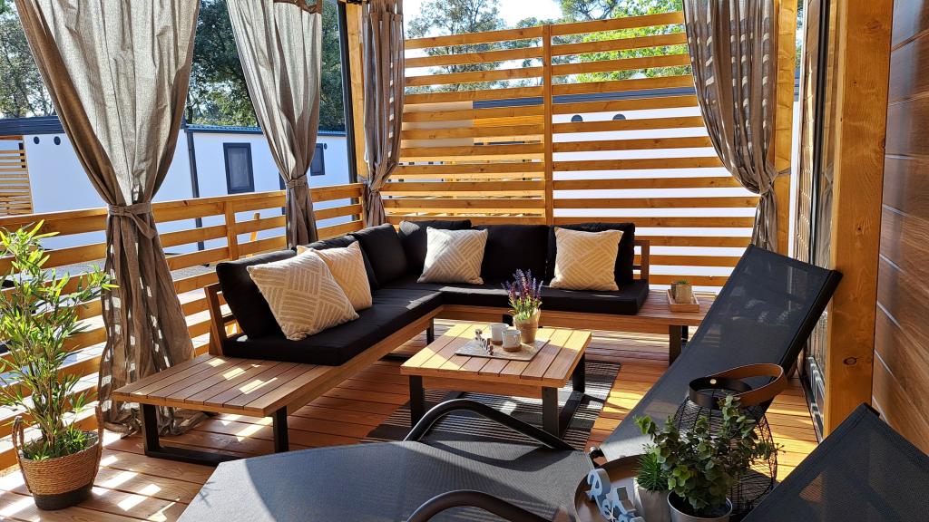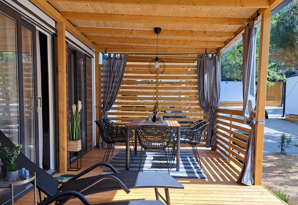 Mobile Home Soles jsou nové, moderně vybavené mobilní domy. Nacházejí se v borovém lese v klidné části kempu Park Soline v krásném Biogradu na Moru. Jsou 5 minut chůze od pláže, obchodů, restaurací a promenády u moře. Mobilní dům Sole 6+2 je pro maximálně 8 osob a má 3 ložnice, 2 koupelny a mobilní dům 4+2 je pro maximálně 6 osob a má 2 ložnice a 2 koupelny. Chatky mají obývací pokoj, plně vybavenou kuchyň, velkou terasu, salonek, venkovní solární sprchu a 1 parkovací místo, WiFi zdarma, SAT, Smart TV, klimatizaci, ručníky, ložní prádlo, myčku nádobí, mikrovlnnou troubu, kávovar, toustovač , vysoušeč vlasů. , žehlička. Kemp nabízí mnoho zařízení pro celou rodinu: krásné písečné a oblázkové pláže, které se táhnou až do centra města, restauraci se středomořskými specialitami, dětské hřiště, animační program a sportovní aktivity. Kemp je navíc ideálním výchozím bodem pro poznávání okolí a návštěvu atraktivních národních parků.