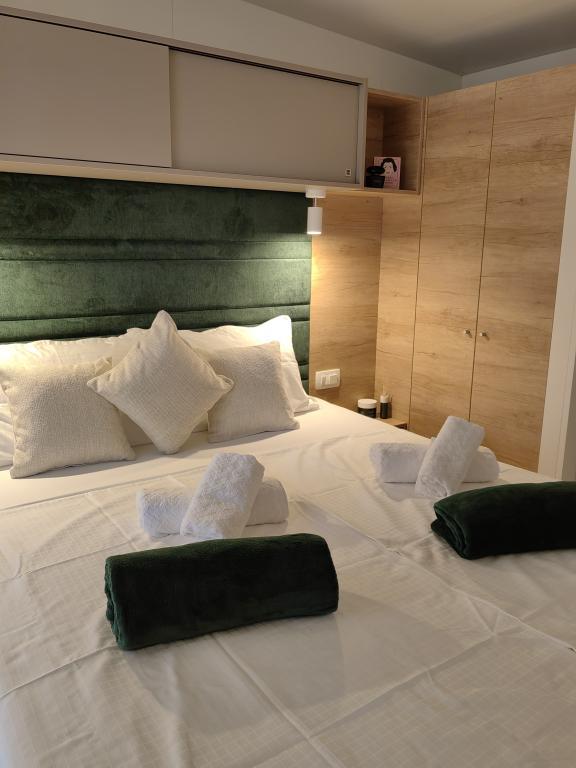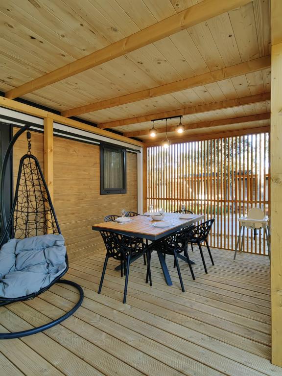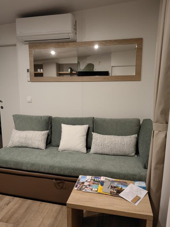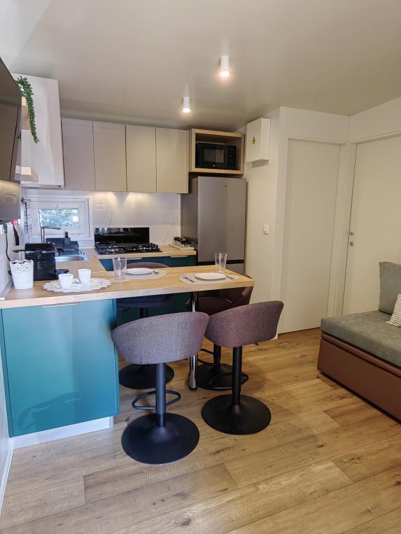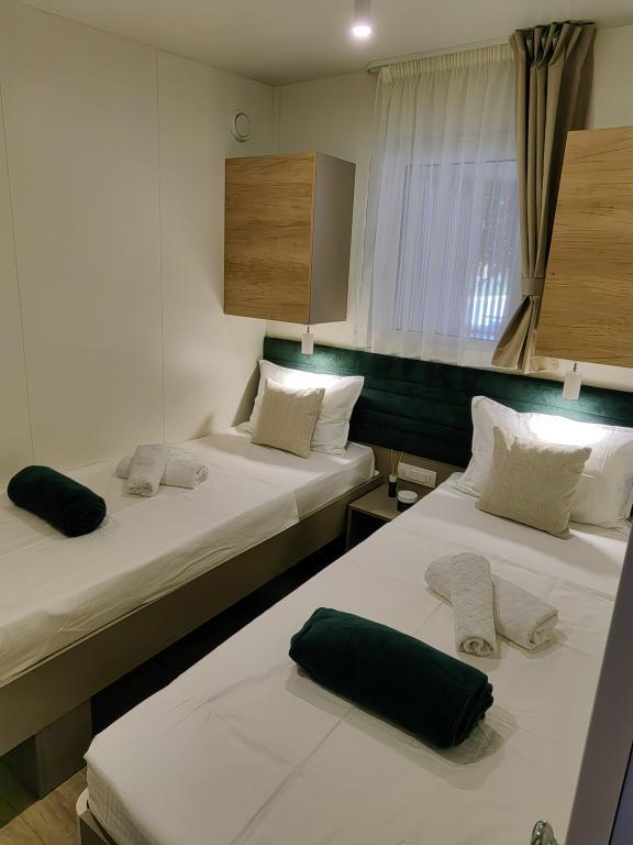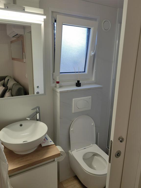 TONKA je plně vybavený mobilní dům se dvěma pokoji [jeden s manželskou postelí a druhý se třemi samostatnými lůžky], skříněmi, koupelnou se sprchovým koutem, obývacím pokojem s přistýlkou [130 x 180 cm], plně vybavenou kuchyní , klimatizace a velká terasa, která je vybavena plynovým grilem a jídelním stolem, terasový nábytek se stolkem, dvě pohodlná lehátka a závěsné křeslo s polštářem, závěsná houpačka, bezdrátové připojení k internetu v celý areál zdarma. Mobilní dům se nachází v klidu borového lesa v kempu Soline park v Biogradu na moru. TONKA je 2-3 minuty chůze od restaurace, pláže a kavárny. V kempu jsou stroje na praní a sušení prádla, obchod, bankomat, pekárna, dětské hřiště a vše co potřebujete pro příjemný pobyt.V bezprostřední blízkosti kempu je promenáda u moře, centrum Biogradu, přístavu Kornati a všeho toho cc 10 minut chůze...
