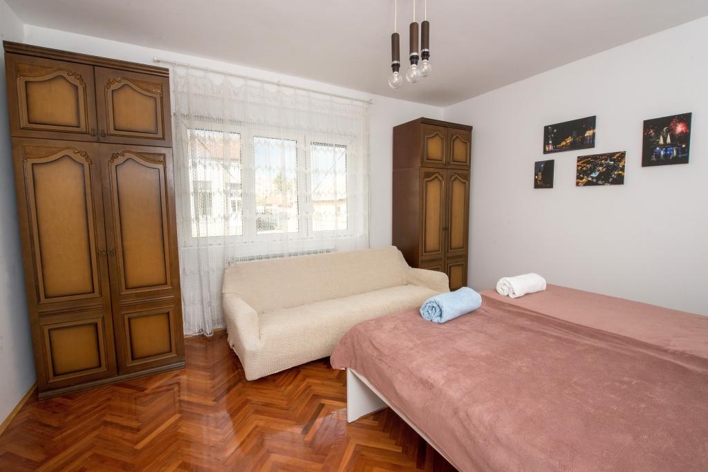 Apartment House of Tea se nachází v centru města Bjelovar. Jedná se o velmi komfortní samostatně stojící dům 75m2 s obývacím pokojem, dvěma ložnicemi, koupelnou a kuchyní. Optický internet je zdarma, rychlost je 1 Gbps po drátě a cca 300 MBps na WI-Fi. V jedné ložnici je manželská postel (140x200 cm), ve druhé dvě samostatné postele (90x200 cm). Kuchyň je plně vybavená (lednice s mrazákem, trouba, plynový sporák, trouba). V obývacím pokoji je LED televize (82 cm) s balíčkem více než 100 tuzemských i zahraničních programů včetně filmového balíčku HBO. Je propojený s Chromecastem, takže je možné přehrávat multimediální obsah z mobilního telefonu. Nechybí ani DVD, knihy, deskové hry. Parkování je možné v uzamčeném dvoře, místa jsou vždy k dispozici. Je dostatečně velký, aby se do něj vešla dodávka. Dětské hřiště je 200 metrů, nejbližší obchod 300 metrů a centrum města 500 metrů. Nachází se na hlavní silnici směrem na Záhřeb, takže je snadné ho najít.