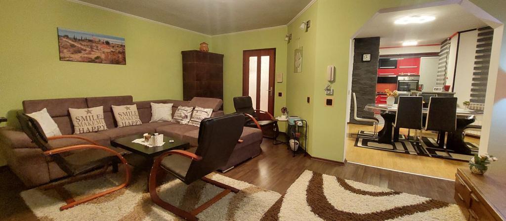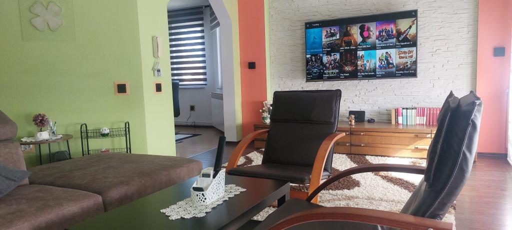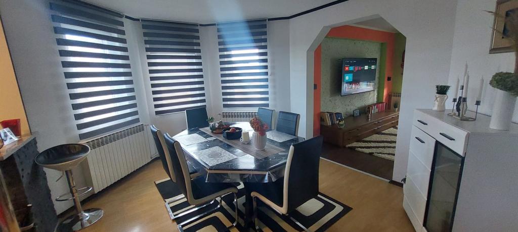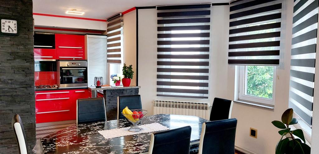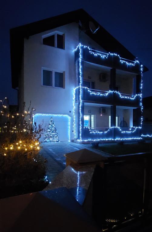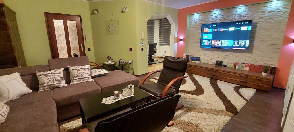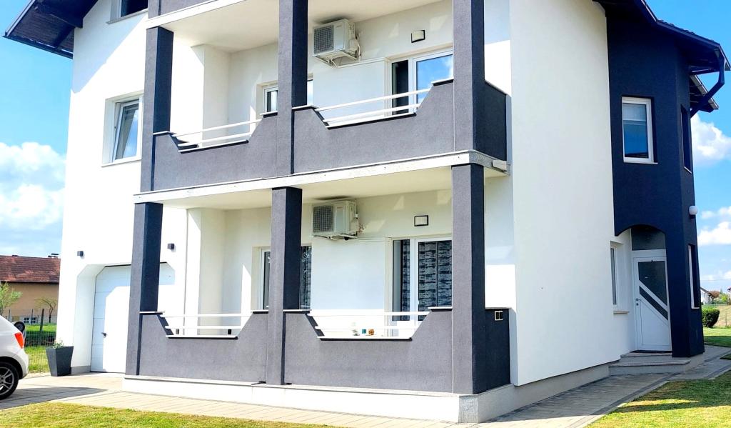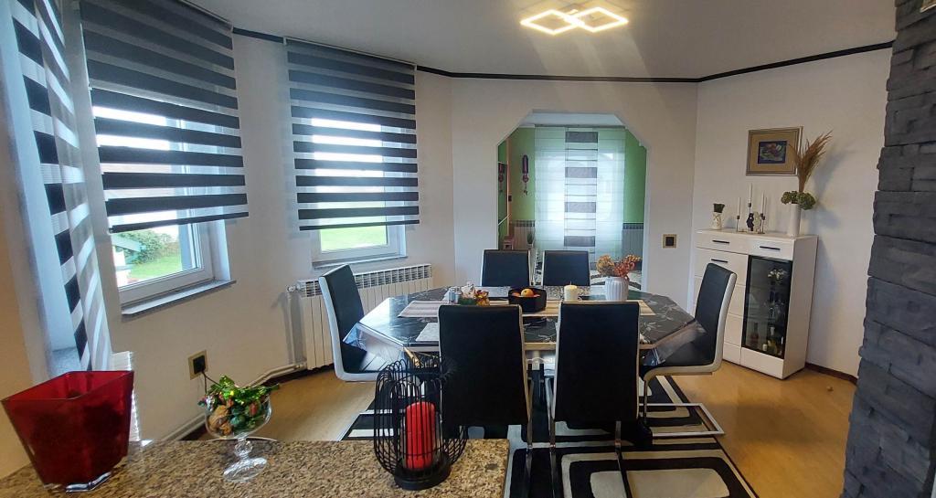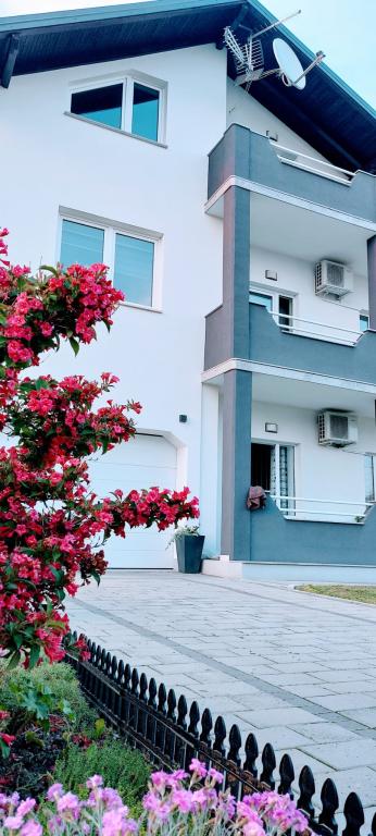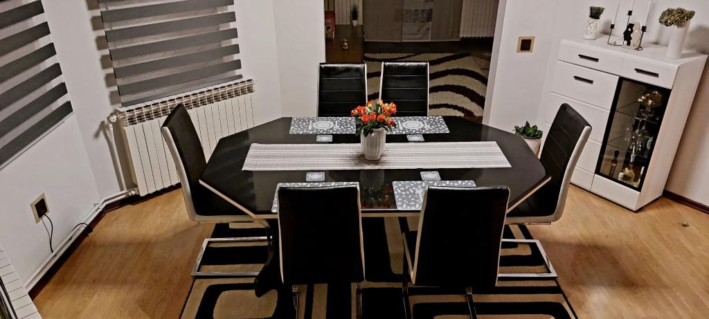 Přijďte si užít nádhernou dovolenou v našem moderně zařízeném apartmánu Matea, který se nachází v klidném a okouzlujícím Bjelovaru! Tento prostorný apartmán o rozloze 70 metrů čtverečních může ubytovat až 4 osoby a nachází se v klidné a tiché čtvrti (ulici) 2 km od centra města, bez dopravy a hluku aut. Apartmán se skládá z 1 ložnice, koupelny, kuchyně, obývacího pokoje, jídelny, balkonu a kryté terasy. K nemovitosti patří parkování pro 3-4 auta a možnost využití garáže, krytá terasa s grilem pro 10 osob, dětské hřiště a oplocená zahrada plná zeleně o rozloze 700 m2.