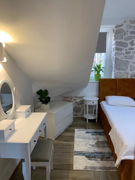 Starý dům je perfektním rodinným místem, kde si můžete užít horké letní dny a čerstvý vzduch. Byt se skládá ze tří prostorných pokojů, z nichž každý má vlastní koupelnu, dále pohodlného obývacího pokoje a plně vybavené kuchyně s jídelnou. Hosté mají navíc k dispozici další zařízení: krásný balkon s výhledem na moře, ideální pro popíjení ranní kávy nebo večerního drinku, dále terasu a krb, který umožní příjemné večerní posezení. Nemovitost je jen 5 minut snadné chůze na krásnou oblázkovou pláž v centru města, navíc se v blízkosti nachází i písečná pláž, která je od domu vzdálena jen 15 minut chůze. Starý dům je ideálním místem k odpočinku a užívání si všeho, co Blace nabízí.