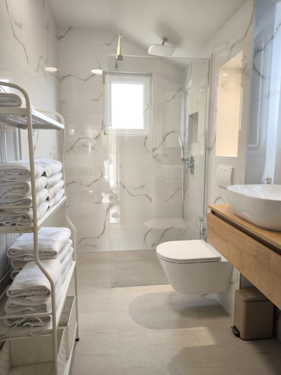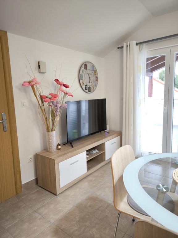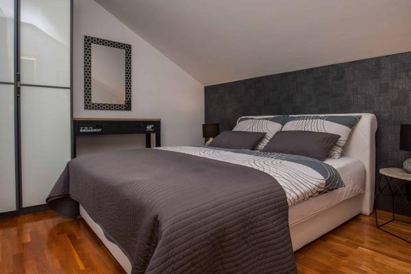 Apartmán Dreams of Bol se nachází v Bolu na ostrově Brač. Je to 10 minut chůze od centra a nachází se v klidném prostředí. Apartmán má vlastní parkovací místo, ničím nerušený výhled na ostrov Hvar, slavnou pláž Zlatni rat a nejvyšší vrchol dalmatských ostrovů, Vidovu goru (778 m). Pouhých 50 metrů pod ubytovacím zařízením se nachází restaurace, 2 supermarkety, pizzerie a zastávka turistického vláčku, který jede na pláž Zlatni Rat. Tento apartmán nabízí dvě ložnice, jednu s manželskou postelí a druhou s oddělenými lůžky, která lze na požádání spojit. V obývacím pokoji je pohovka, kterou lze rozložit na pohodlné lůžko pro 1 až 2 osoby. Kromě toho nabízíme plně vybavenou kuchyň, koupelnu s pračkou a prostornou terasu (chráněnou před výhledem) s venkovním stolem, pohodlnými lehátky a vířivkou. Apartmán je klimatizovaný, se dvěma klimatizačními jednotkami v obývacím pokoji a jedné ložnici, Wi-Fi připojením a LED TV. Máme také další prostor pro úschovu kol. Jednorázový úklid 50 €