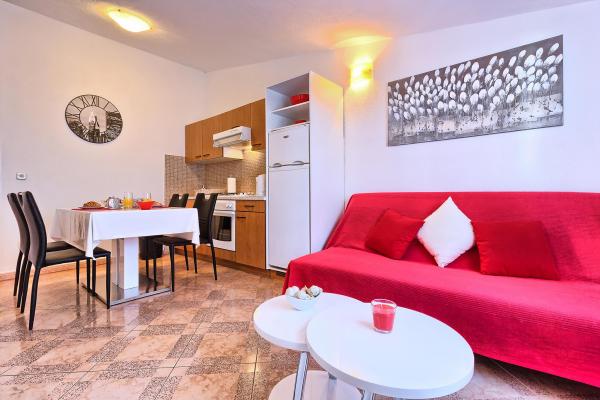 Apartmány jsou umístěny v rodinném domě postavený z bílého kamene z Brač. Pro každý apartmán nabízí nádherný výhled na křišťálově modrého moře. Do centra města je jen 4 minuty chůze od hotelu, zatímco první pláž je k dispozici za méně než 7 minut chůze. Oba apartmány jsou nově vybaveny a zůstane v našich apartmánech poskytne nezapomenutelný zážitek.