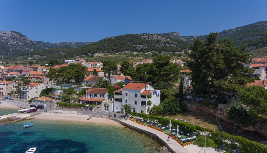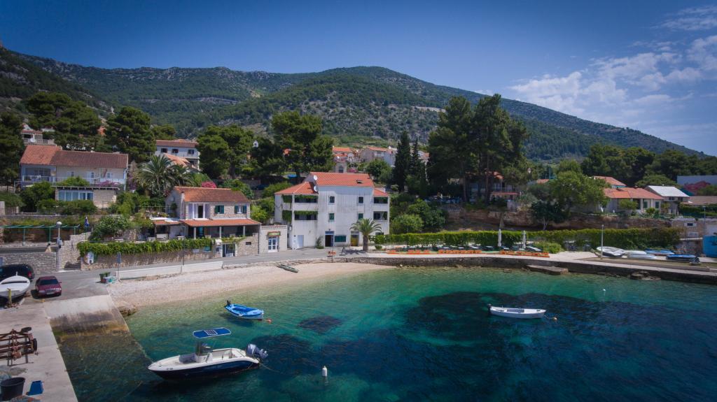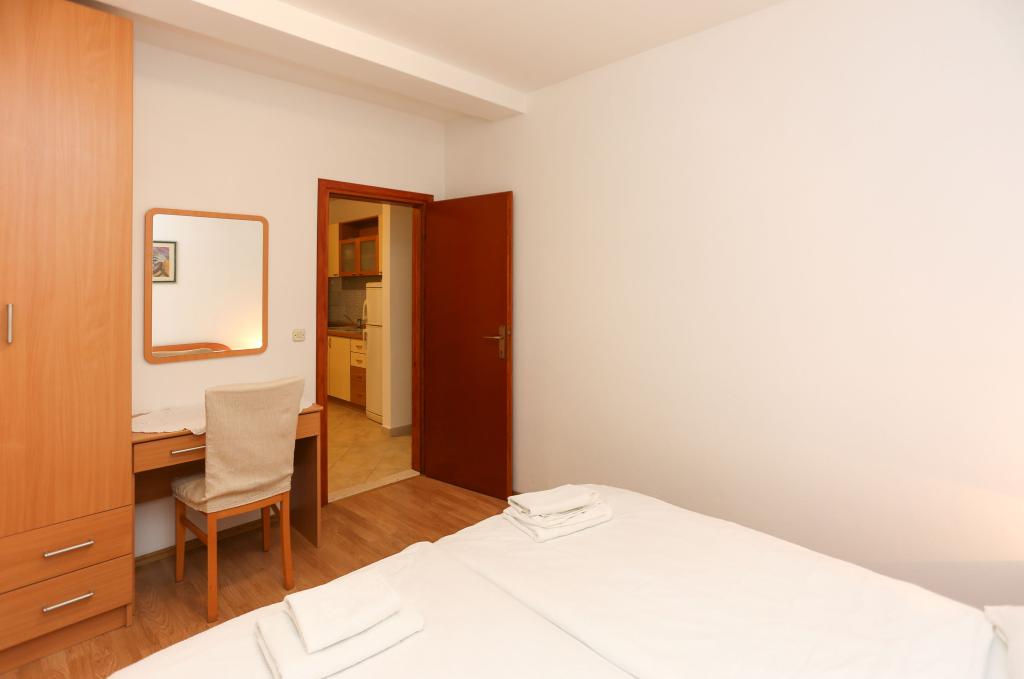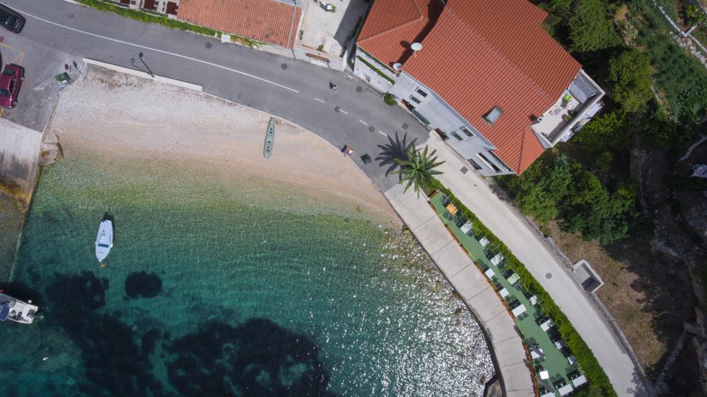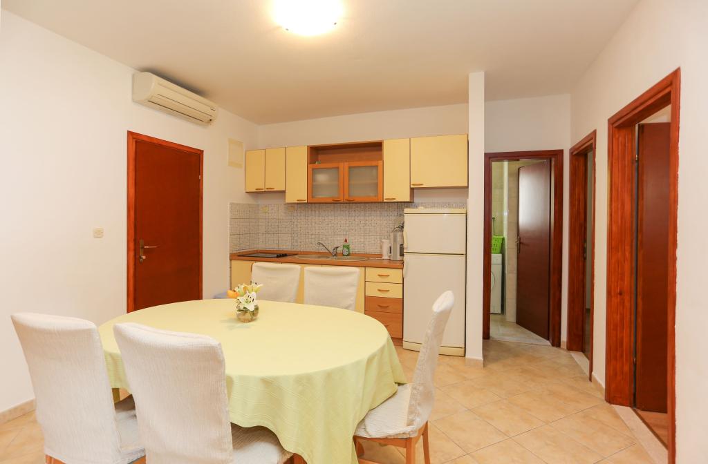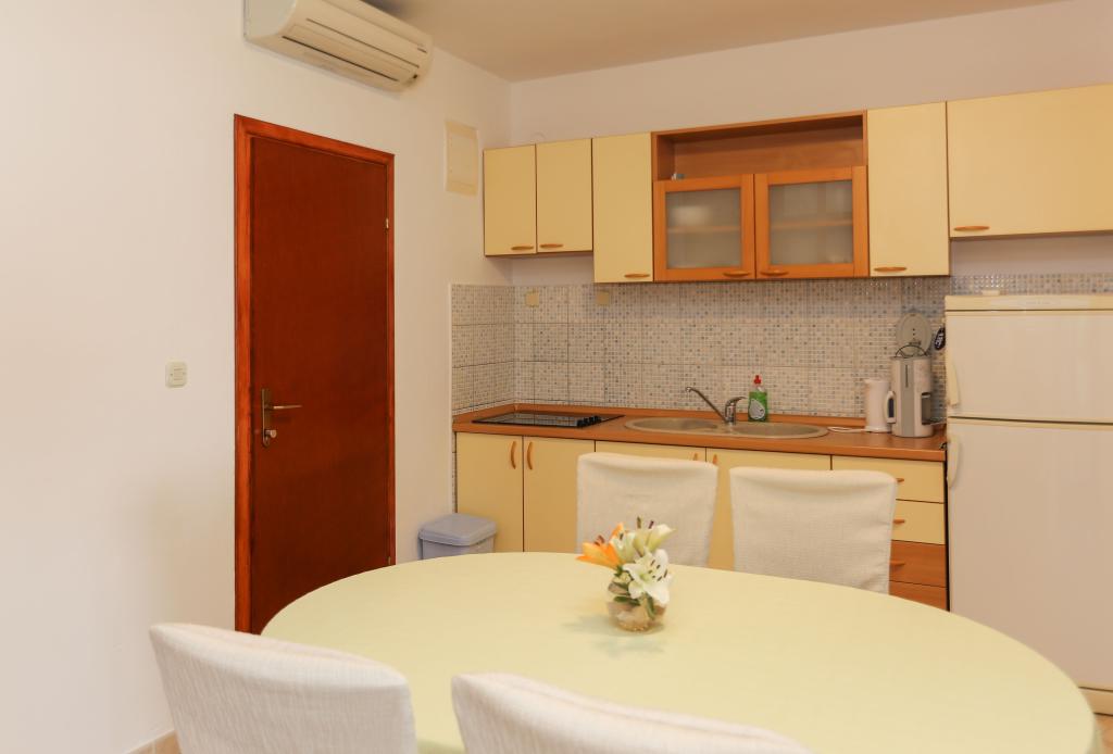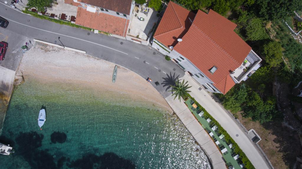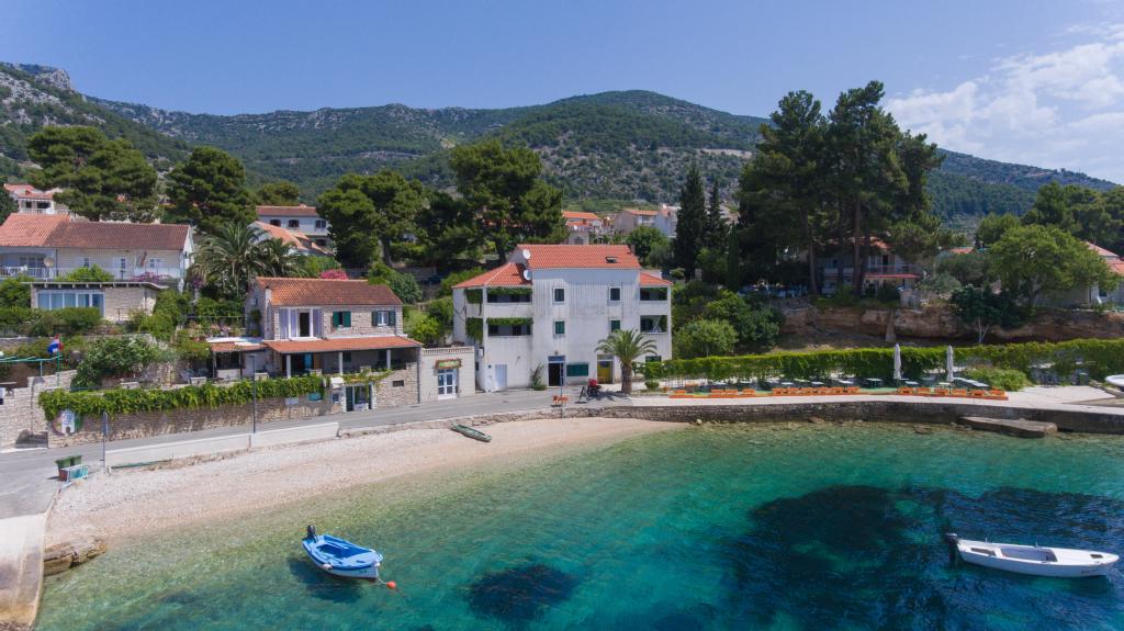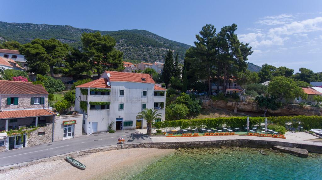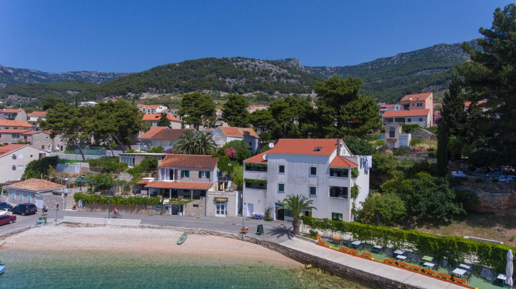 Apartmány Laguna se nacházejí v polovině cesty mezi centrem města a dominikánským klášterem. Každý apartmán má dvoulůžkový pokoj, pokoj se dvěma samostatnými lůžky, koupelnu, kuchyň a velkou terasu s výhledem na moře. Centrum města je vzdálené 150 metrů. V okruhu 100 metrů se nacházejí 3 restaurace à la carte s dalmatskou kuchyní a dvě pizzerie. Restaurace v přízemí je kvůli hluku uzavřena, takže nejbližší restaurace à la carte je vzdálená 50 metrů.