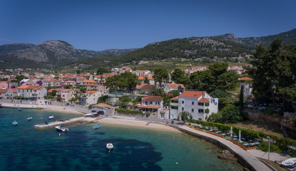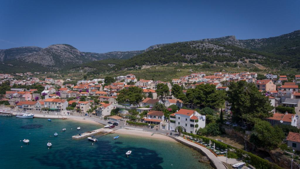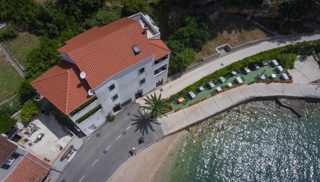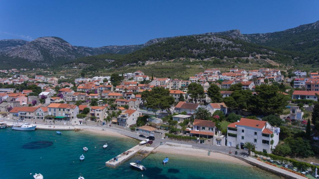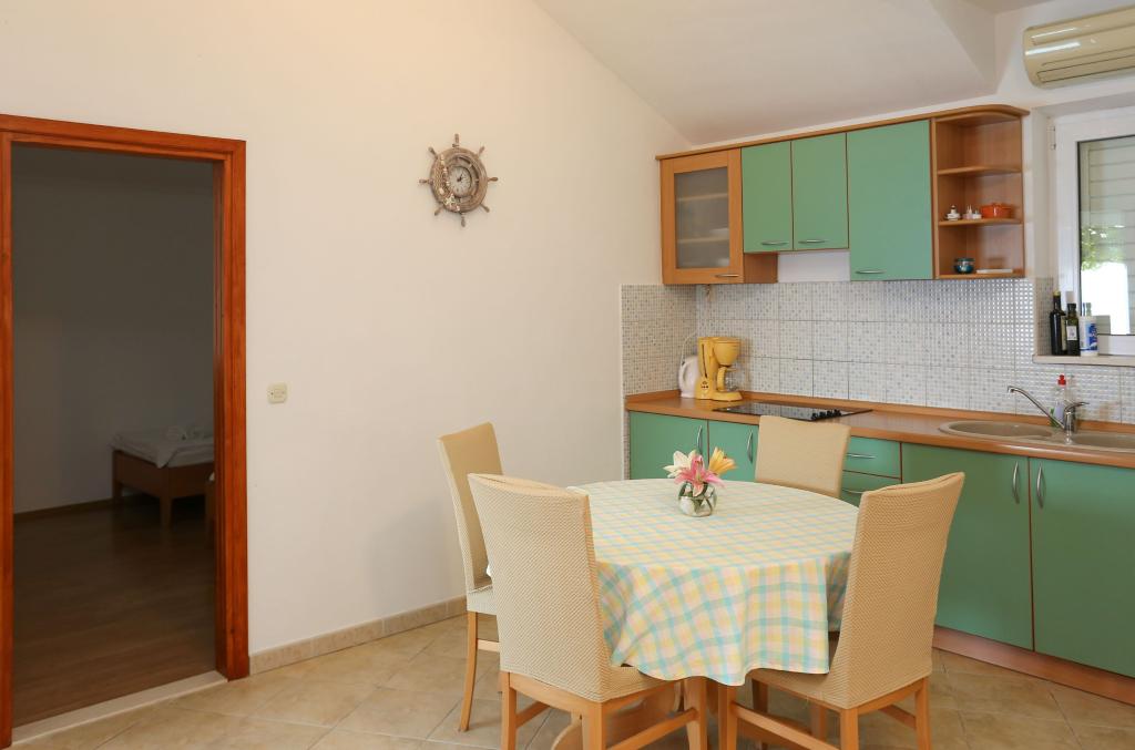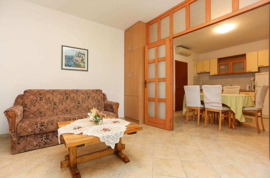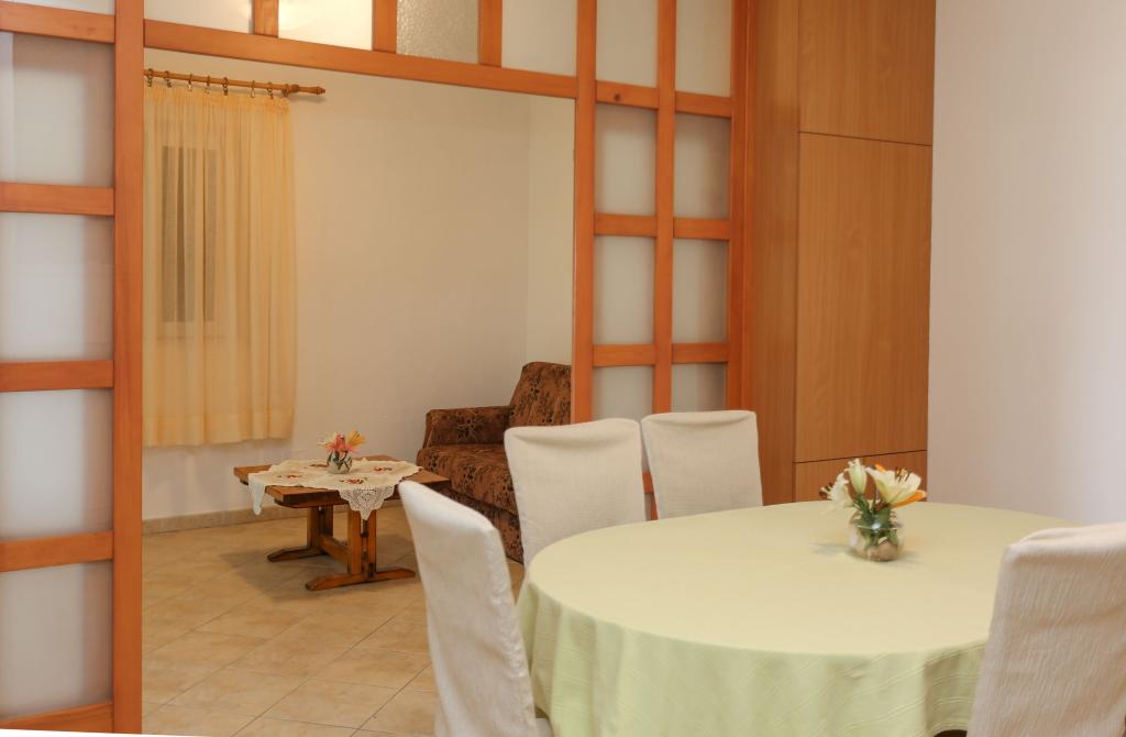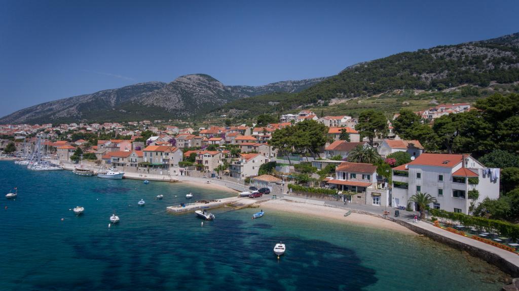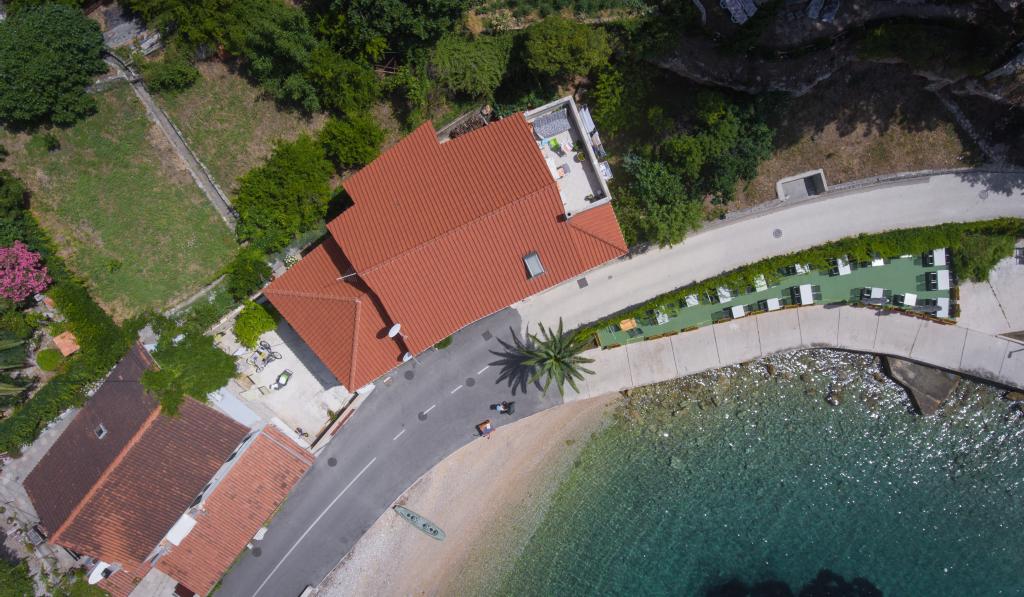 Apartmány Laguna se nacházejí v polovině cesty mezi centrem města a dominikánským klášterem. Každý apartmán má dvoulůžkový pokoj, pokoj se dvěma samostatnými lůžky, koupelnu, kuchyň a velkou terasu s výhledem na moře. Centrum města je vzdálené 150 metrů. V okruhu 100 metrů se nacházejí 3 restaurace à la carte s dalmatskou kuchyní a dvě pizzerie. Restaurace v přízemí je kvůli hluku uzavřena, takže nejbližší restaurace à la carte je vzdálená 50 metrů.