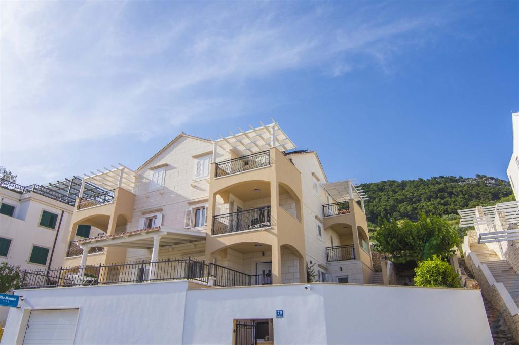 Vila Marina se nachází v klidnější části Bolu na ostrově Brač, jen pár minut chůze od centra města a moře. Objekt nabízí několik apartmánů, které jsou všechny úhledné, funkční a vybavené pro příjemný pobyt v létě. Každý apartmán má vlastní kuchyň, koupelnu, klimatizaci a balkon nebo terasu. Většina z nich má výhled na moře nebo město. Hosté mají k dispozici soukromé parkoviště v areálu objektu. Do centra Bolu, k restauracím, obchodům a na nábřeží se snadno dostanete pěšky a slavná pláž Zlatni rat je vzdálená asi 15-20 minut chůze nebo pár minut jízdy autem. Objekt je vhodný pro páry, rodiny a malé skupiny, které hledají jednoduché a pohodlné ubytování v blízkosti veškeré občanské vybavenosti, ale bez hluku.
