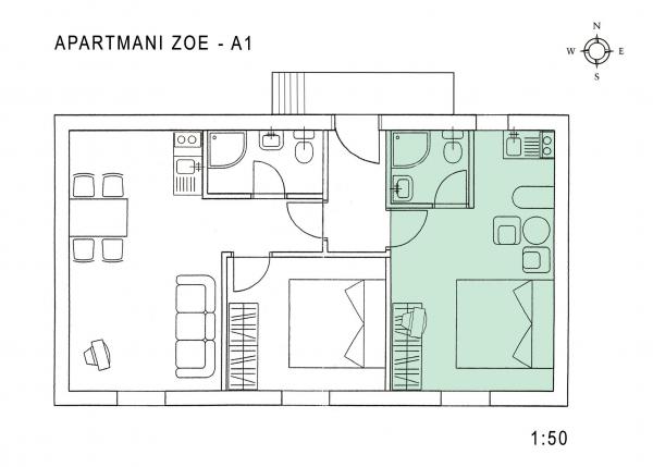 Apartmán pro dvě osoby se dvěma přistýlkami (36 m2)