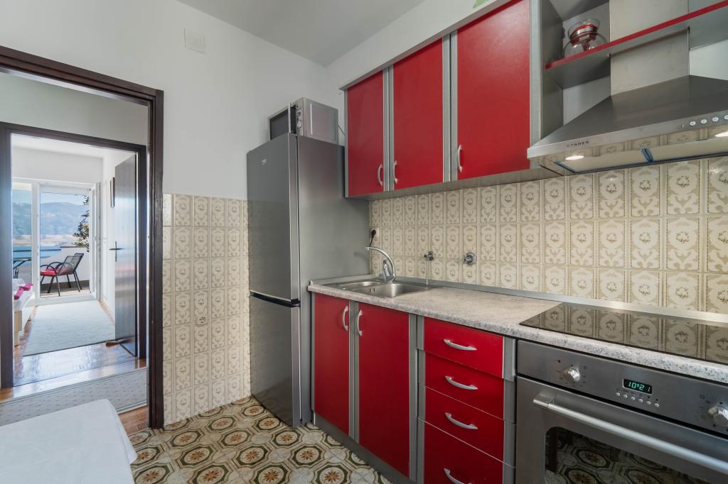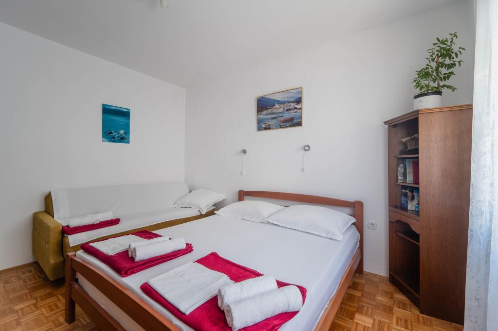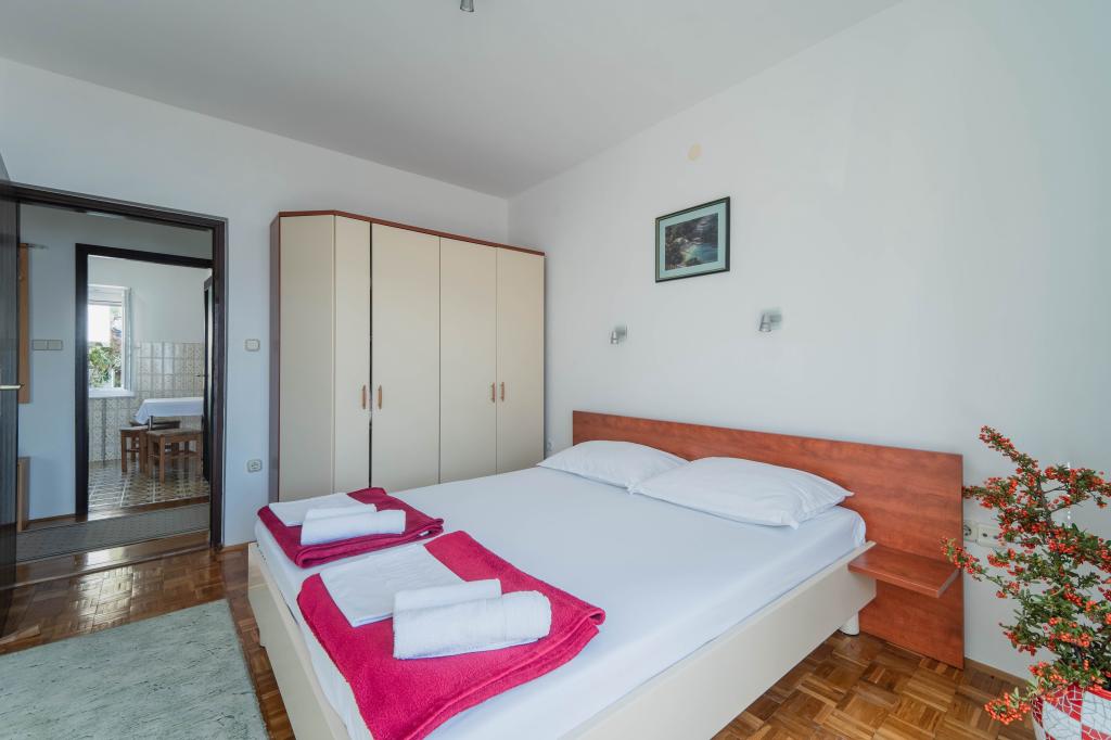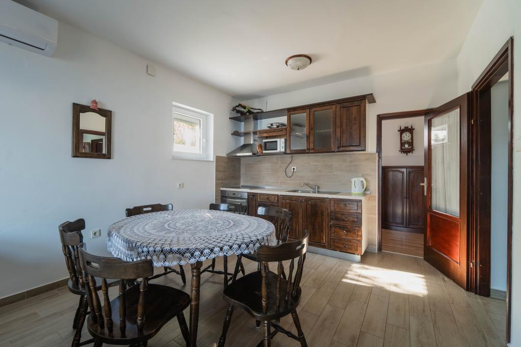 V tomto apartmánu jsme byli již 3x. Apartmán je zařízen standardně, 3 pokoje, kuchyň, koupelna, velká terasa. 8-9 lidí se vejde bez problému. 2x klimatizace. Venku sprcha. Majitel a jeho rodina jsou velice přívětiví a ochotní. Cesta k moři po schůdné cestě cca 100 m, pěkná, menší pláž, oblázky. Více malých i větších romantických pláží v okolí, pokud chcete kousek dojít nebo dojet autem. Moře čisté, krásné. Doporučuji.