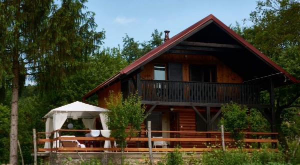 Dřevěná chata 100 metrů od řeky Kupa, pro 4 osoby a postýlka na vyžádání. Interiér domu tvoří: přední místnosti, koupelna se sprchovým koutem a WC, obývací pokoj a kuchyň. V patře jsou dvě ložnice. Oba mají balkon podél celého domu. Dům je vytápěn konvektory. Rošt je přenosný. Terasy čelí nákup (bez trávy a bahna), ideální pro plavání a jízda na kajaku a kanoistika, a je ideální pro rybaření. Hranice Cup se Slovinskem. Tato lokalita je bohatá na zdroje pro lov, rybaření, pěší turistiku a procházky v přírodě. V blízkosti jsou pozůstatky pevností a hradů Novigrad, Bosiljevo a Severin koupit. Ve vzdálenosti 40 minut jízdy je Národní park Risnjak, Green zdroj, Kamačnik, Severní Velebit a Kvarner.