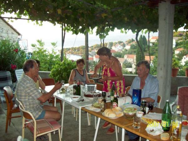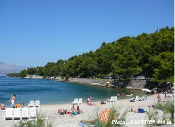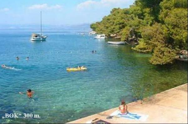 Nabízíme: Apartmán - 1/6 +2 Tři pokoje apartmán až pro 8 osob se dvěma koupelnami, kuchyní, obývacím pokojem a velkou, částečně pokryty, ideální pro stravování a prostor pro odpočinek, odkud je krásný výhled na záliv a Brač kanálu; -. - POKOJ 2 x 1/2 se sprchou / WC, kuchyň použití; --- 4 x AP / studio s vanou / WC, kuchyně a lodžie. Velká krytá plocha využívána jako obývací pokoj. Parkování ve dvoře. Dvůr je plný středomořské vegetace. Plně vybavený grilování na zahradě. --- Vzdálenosti: moře 200 m. Pláž 300 m. Supermarket 200 m. Restaurace 100 až 200 metrů.