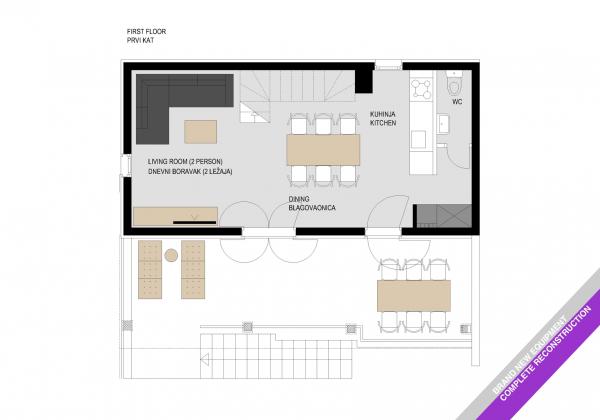 Idylické letní dům se nachází mezi centrem a hlavní pláže Milne Bay (5 minut chůze na oba). Celý dům se pronajímá v kuse jako bytu, který zaručuje naprosté soukromí pro naše hosty. Dům je obklopen vlastními a sousední zahrady, které vytvářejí specifickou přirozený pocit izolace s přímým výhledem na moře (20 m). Podél pobřeží je hlavní přístupová cesta, ze které pritupna dům schody a pěší cesta (délka 35 m). Na téže banky je zdarma zaparkovat auto. Dům má dvě podlaží, v přízemí a prvním patře. V přízemí se nachází kuchyň s jídelním koutem a samostatnou koupelnou. Je obklopen velkými terasami a zahradou. Z přízemí je otevřena váhy přes velkou krytou terasu, kde patře malá hala a tři ložnice: První Pokoj má 2 velkými postelemi pro 1 osobu. 2. pokoj má postel pro 2, který může být přeměněn na sedací soupravou (může být obývací pokoj). 3. pokoj má velkou manželskou postel