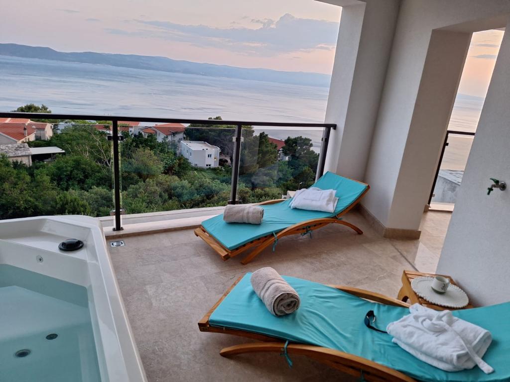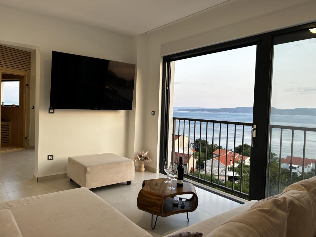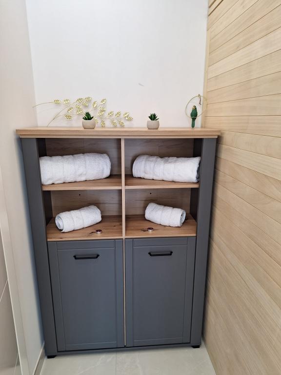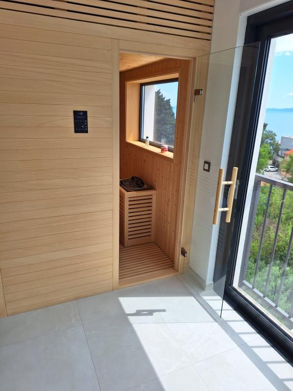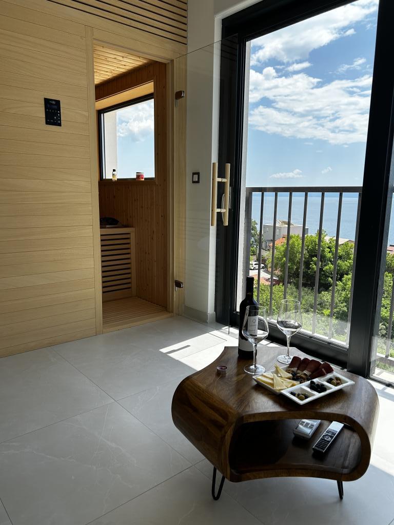 Nový, moderně vybavený dvoupatrový apartmán se saunou, hydromasážním bazénem. Objekt se nachází v rodinném domě, 10 minut chůze od pláže, možnost využití parkoviště u pláže. Skládá se z ložnice, koupelny, obývacího pokoje s kuchyní, velké terasy s hydromasážním bazénem, ve druhém patře je sauna, obývací pokoj, WC a sprcha.