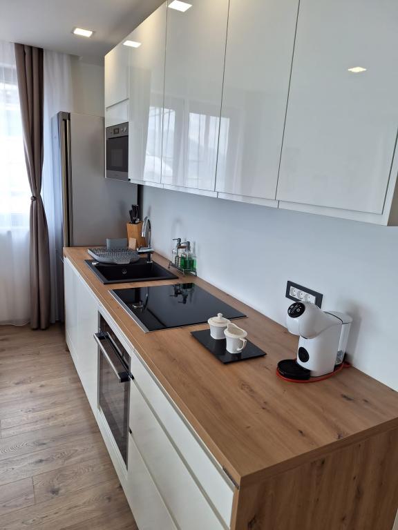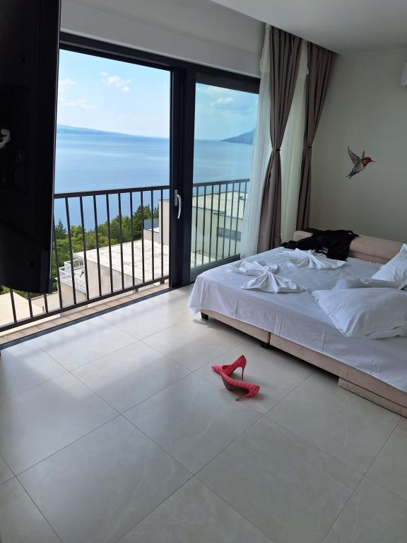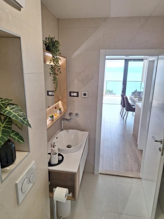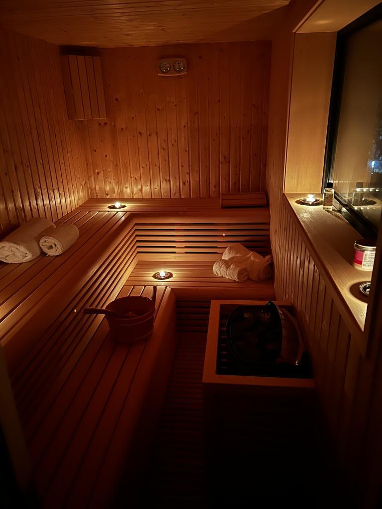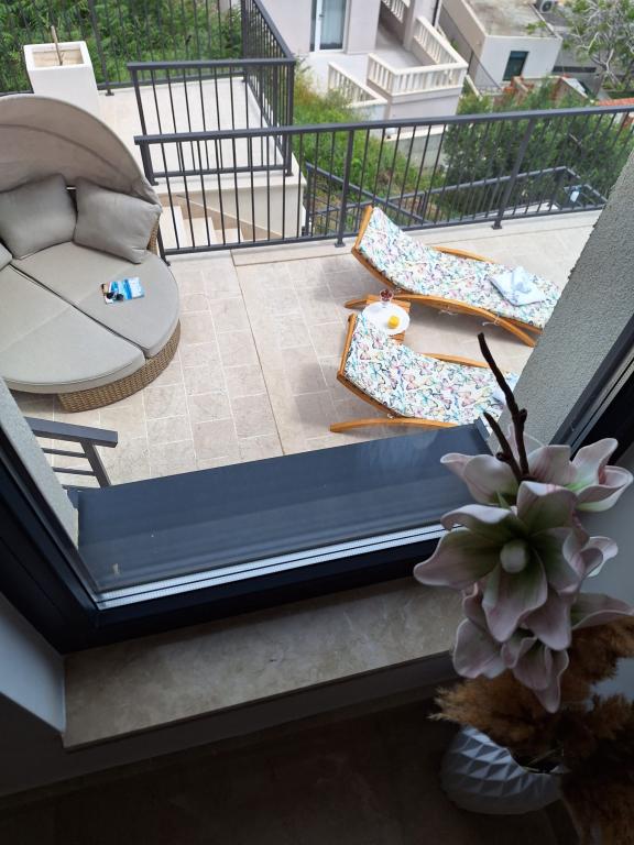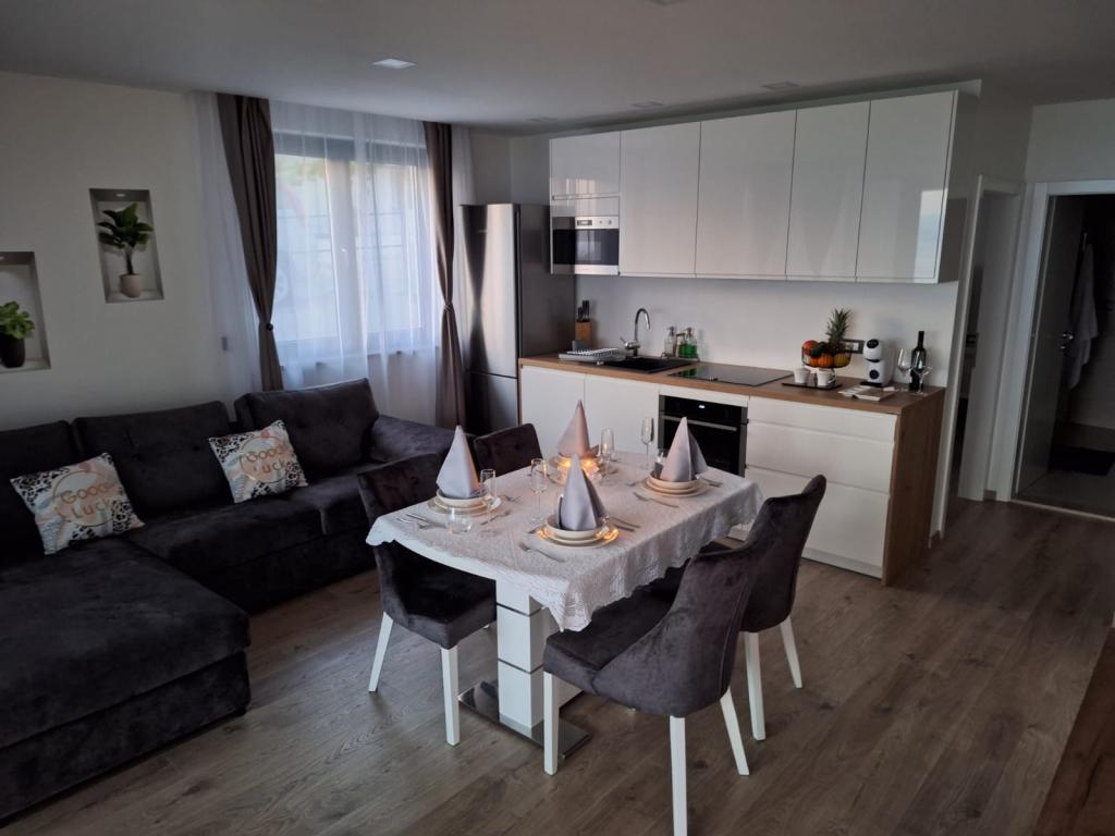 Nový, moderně vybavený dvoupatrový apartmán se saunou, hydromasážním bazénem. Objekt se nachází v rodinném domě, 10 minut chůze od pláže, možnost využití parkoviště u pláže. Skládá se z ložnice, koupelny, obývacího pokoje s kuchyní, velké terasy s hydromasážním bazénem, ve druhém patře je sauna, obývací pokoj, WC a sprcha.