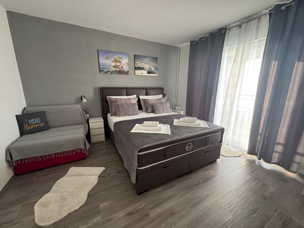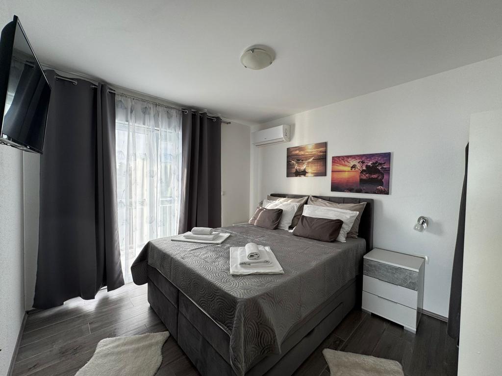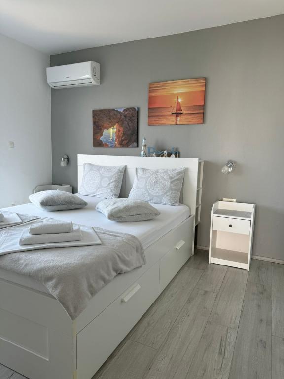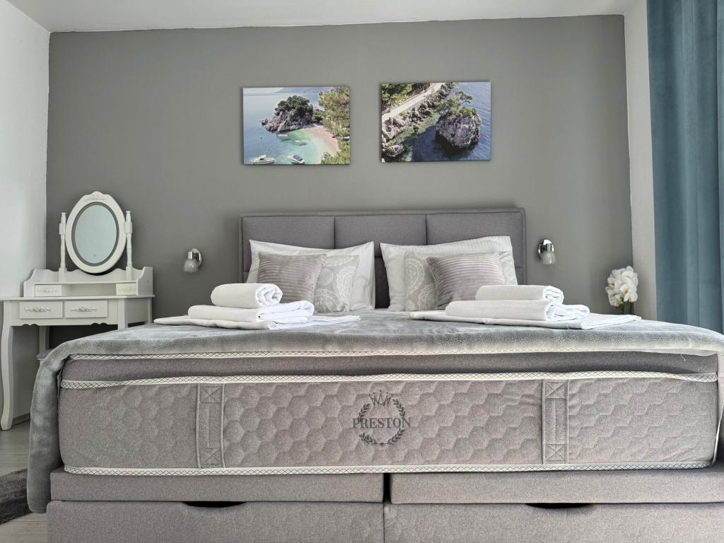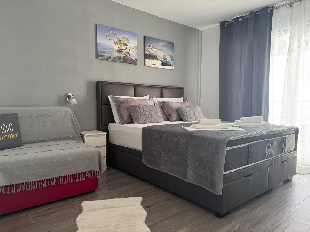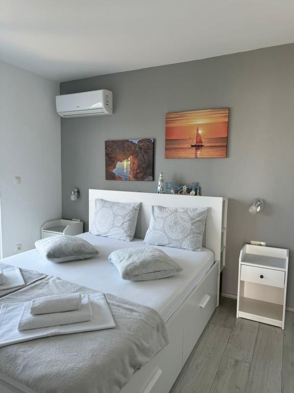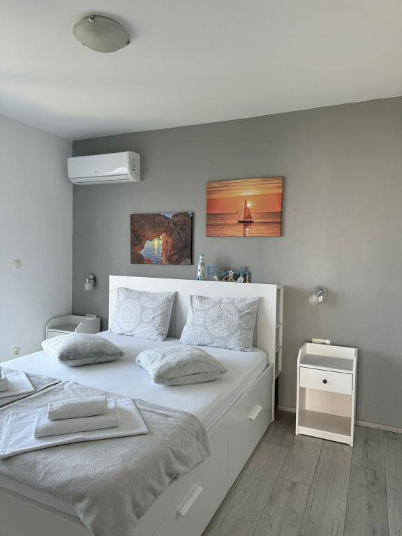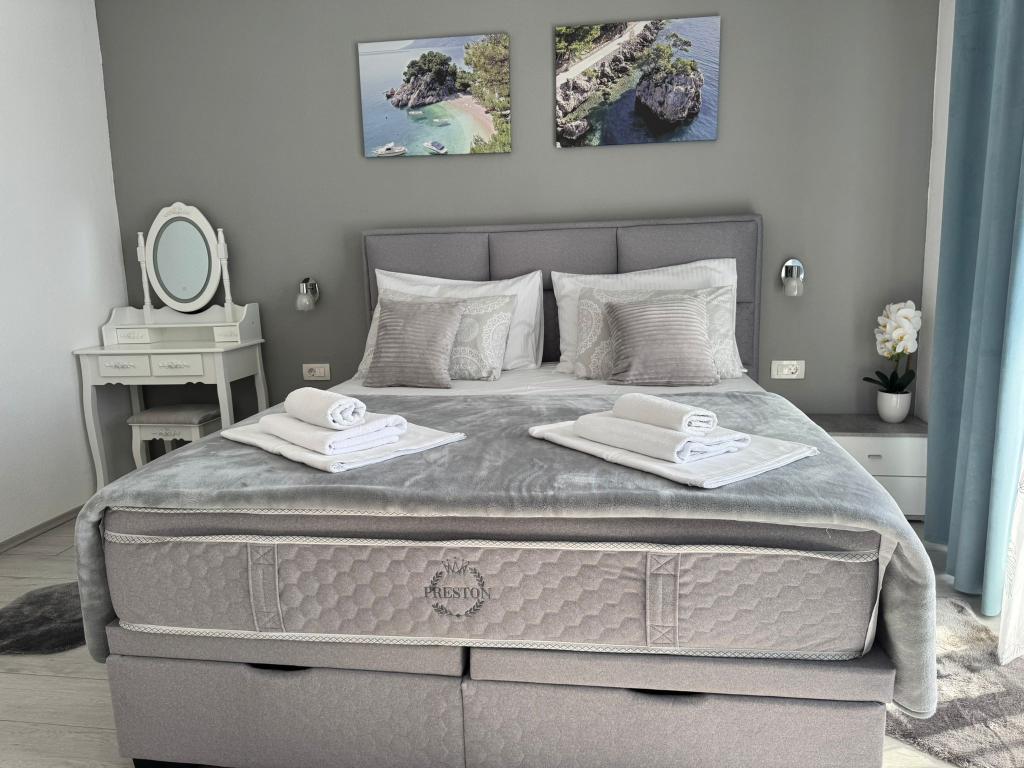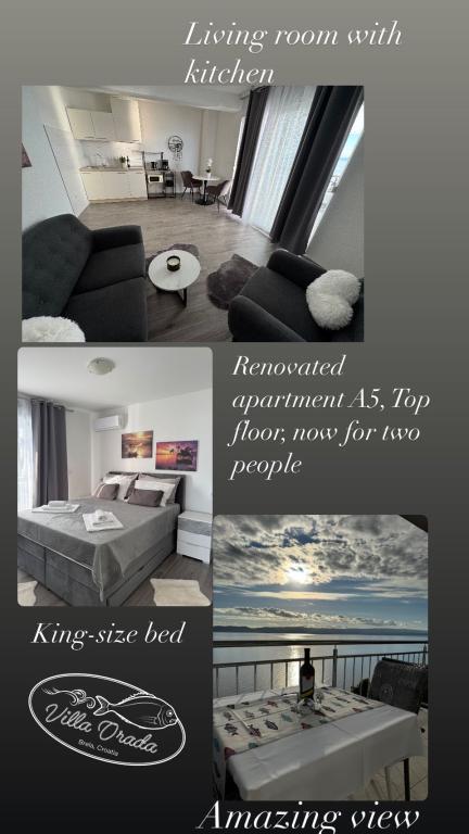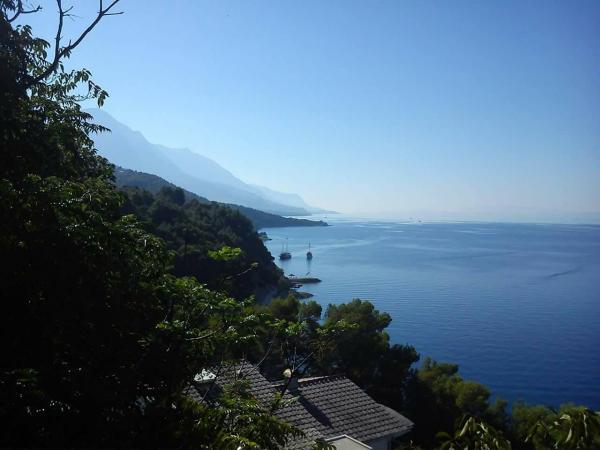 VILLA Orada obklopen borovým lesem s výhledem na moře a dalmatské ostrovy se nacházejí v klidné zátoce Podcrkavlje v Donja Brela. 150 metrů od hotelu jsou nádherné pláže, kde si každý může najít něco pro sebe, od restaurací, kaváren, koktejlových barů, suvenýrů a předmětů na pláži vodní sporty. V bytě se nachází pouhých 10 minut chůze od mini trhy a cestovních kanceláří, které na oplátku nabízí dobrodružný rafting na řece Cetina nedaleko města, pěší turistiku na horském svahu a výlety lodí na nedaleké dalmatských ostrovech. Brela je jedinečná svými křišťálově modrého moře, krásné pláže a zátoky, a jsou stejně jako ideální místo pro vaši dovolenou a přátelské hostitele se ujistěte, že se cítím pohodlně a spokojeně. Vítejte!