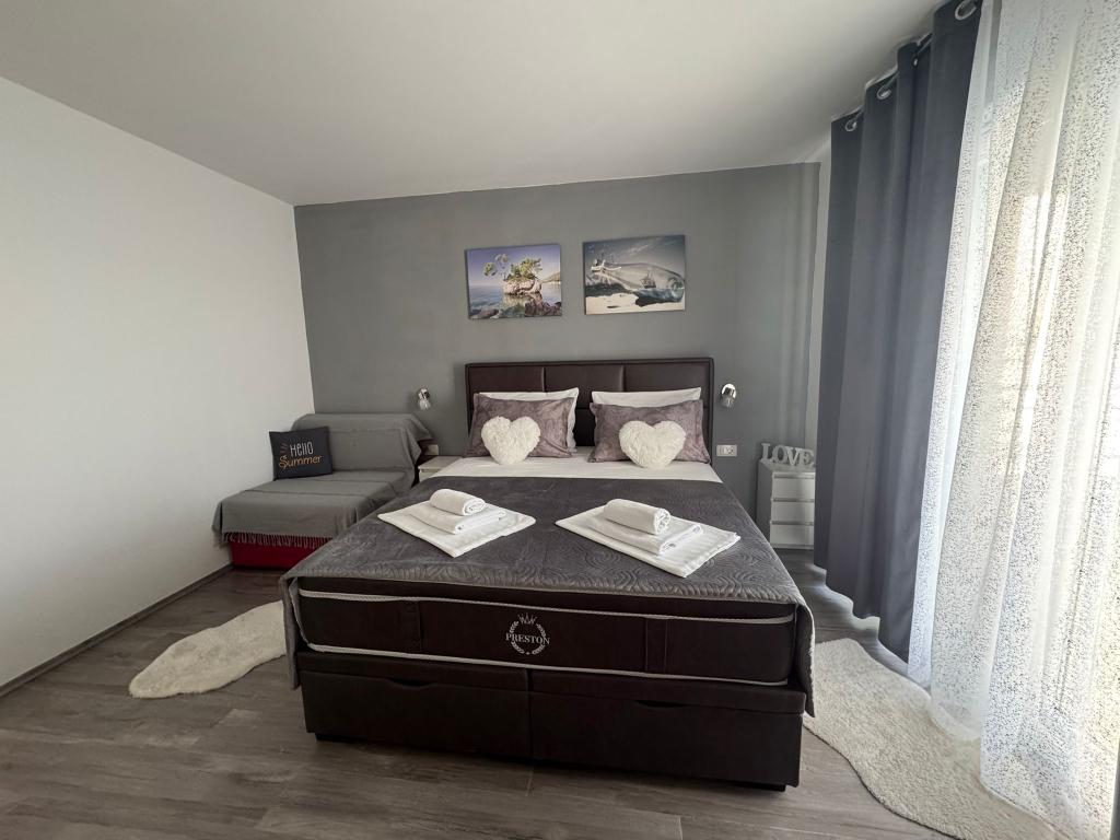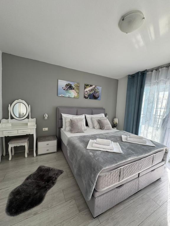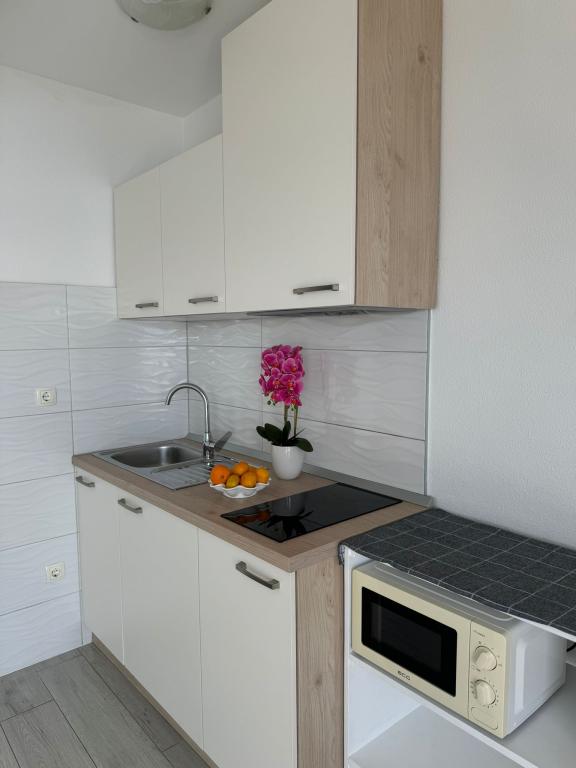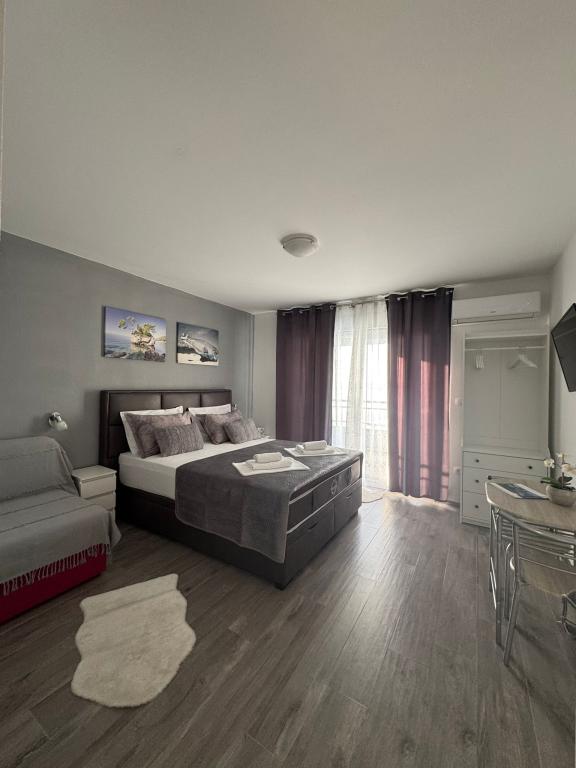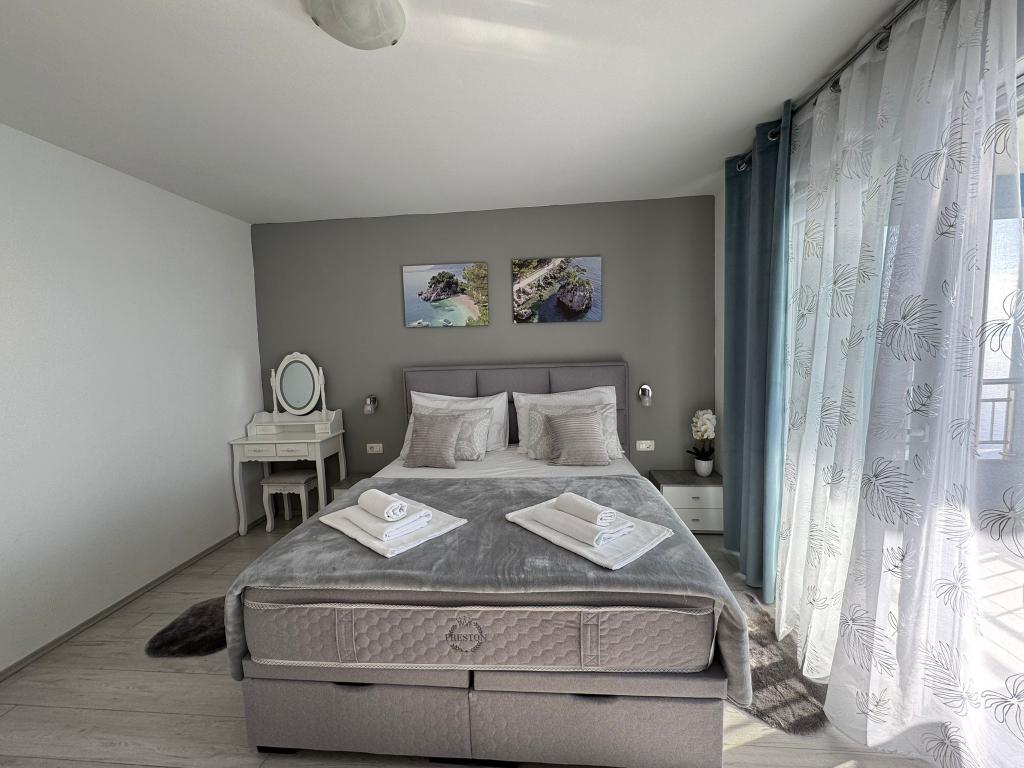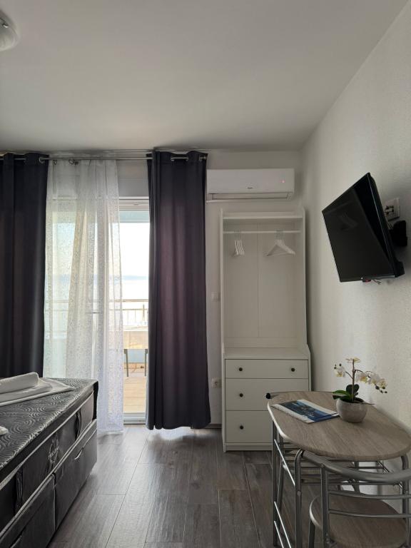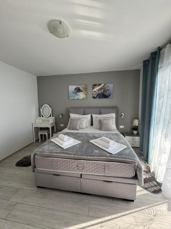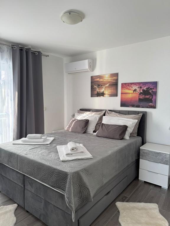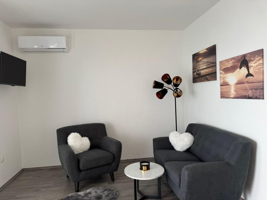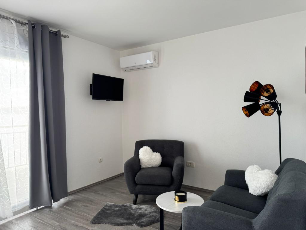 VILLA Orada obklopen borovým lesem s výhledem na moře a dalmatské ostrovy se nacházejí v klidné zátoce Podcrkavlje v Donja Brela. 150 metrů od hotelu jsou nádherné pláže, kde si každý může najít něco pro sebe, od restaurací, kaváren, koktejlových barů, suvenýrů a předmětů na pláži vodní sporty. V bytě se nachází pouhých 10 minut chůze od mini trhy a cestovních kanceláří, které na oplátku nabízí dobrodružný rafting na řece Cetina nedaleko města, pěší turistiku na horském svahu a výlety lodí na nedaleké dalmatských ostrovech. Brela je jedinečná svými křišťálově modrého moře, krásné pláže a zátoky, a jsou stejně jako ideální místo pro vaši dovolenou a přátelské hostitele se ujistěte, že se cítím pohodlně a spokojeně. Vítejte!
