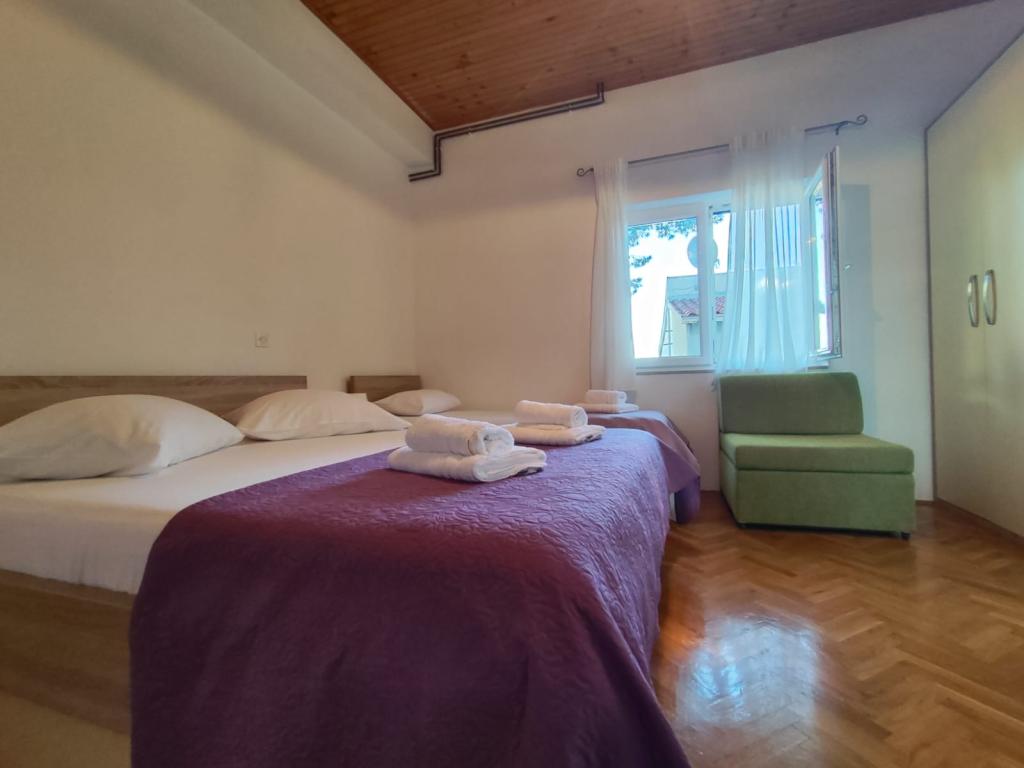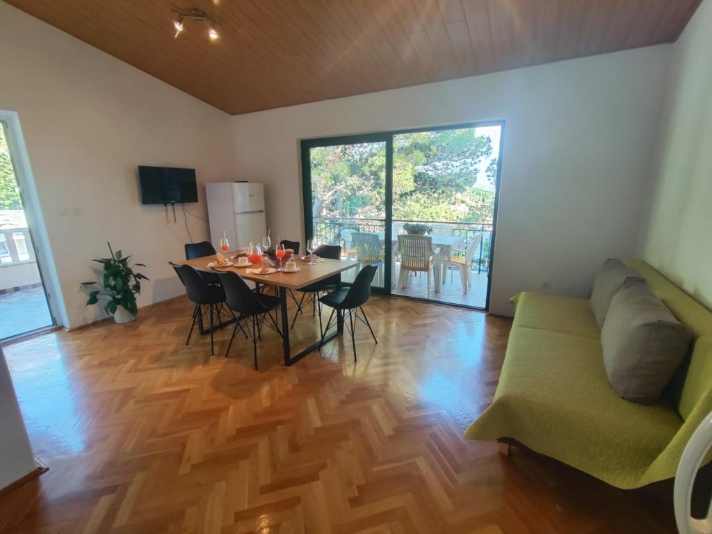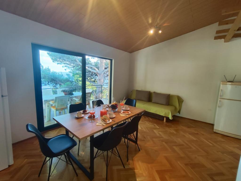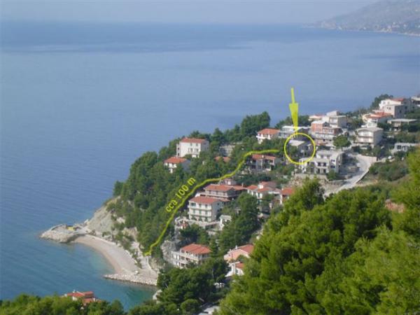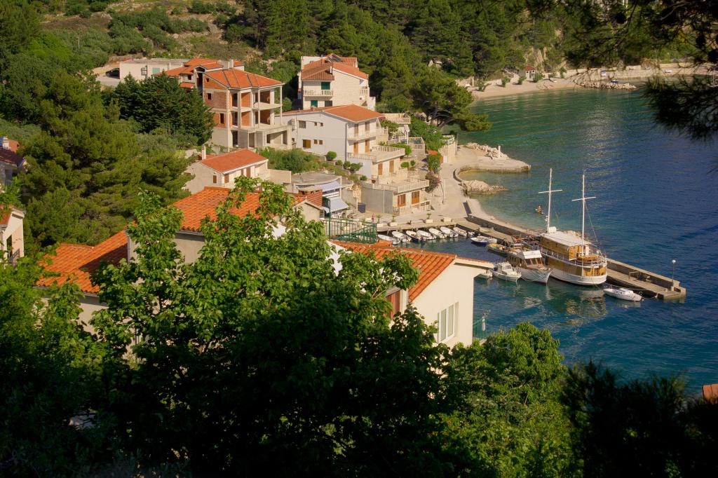 Naše apartmány se nacházejí v klidné části Brely, ideální pro rodinnou dovolenou a úplnou relaxaci. Uhnízděné mezi voňavými borovicemi nabízejí úžasný výhled na křišťálově čisté Jaderské moře a horu Biokovo. Apartmány jsou moderně vybaveny. Každý pokoj má vlastní koupelnu, balkon, klimatizaci a ručníky a ložní prádlo jsou k dispozici. Plně vybavená kuchyně (sporák, lednice, kompletní nádobí a příbory) umožňuje přípravu jídel v příjemné domácí atmosféře. Každý apartmán má prostornou terasu, TV, WiFi, parkoviště a možnost využití grilu pro nezapomenutelné večery u moře. Dům se nachází na kopci, pouhých 100 metrů od oblázkové pláže, ideální ke koupání a opalování. Brela je známá svými přírodními krásami, dlouhou promenádou podél pobřeží a legendárním Brelským kamenem. Kromě toho se v blízkosti nachází řada restaurací s místními specialitami, kavárny u moře a možnosti pro různé sportovní a rekreační aktivity, jako je pěší turistika, cyklistika a vodní sporty. ️