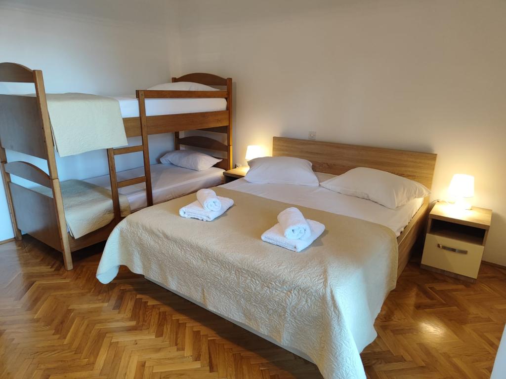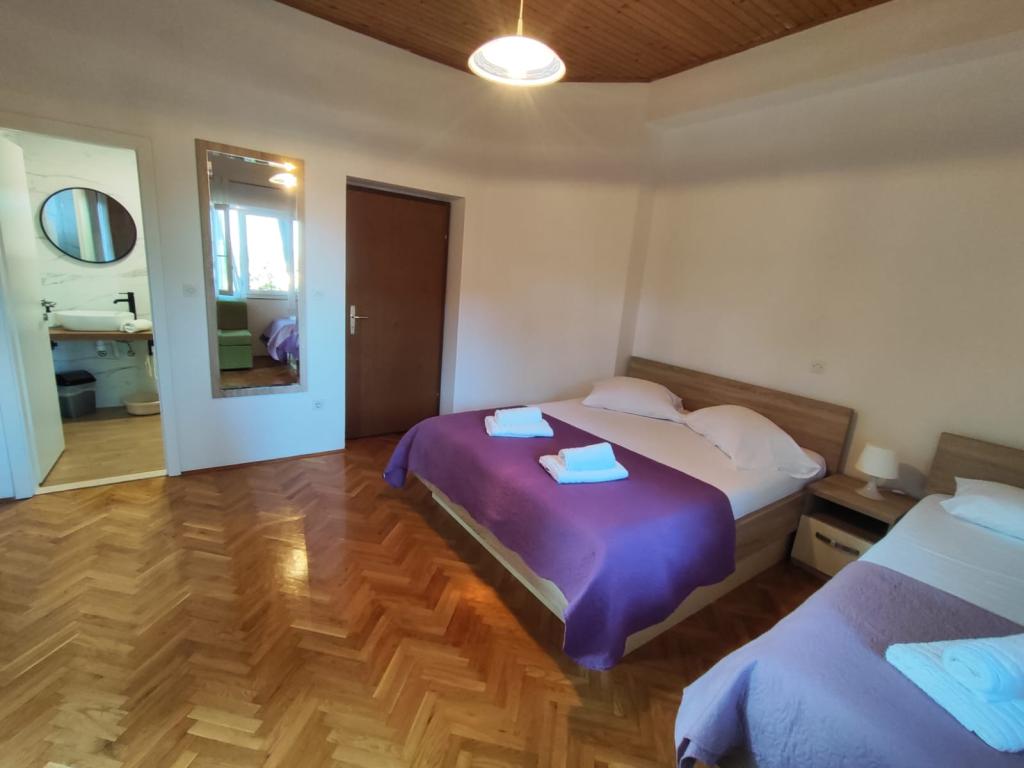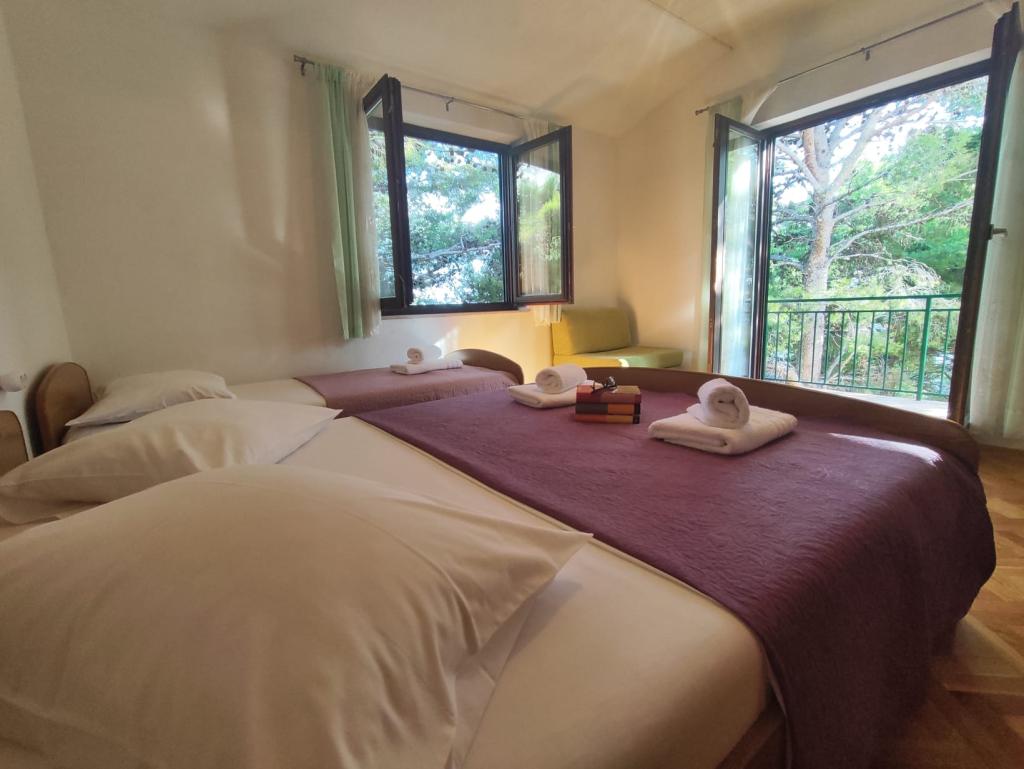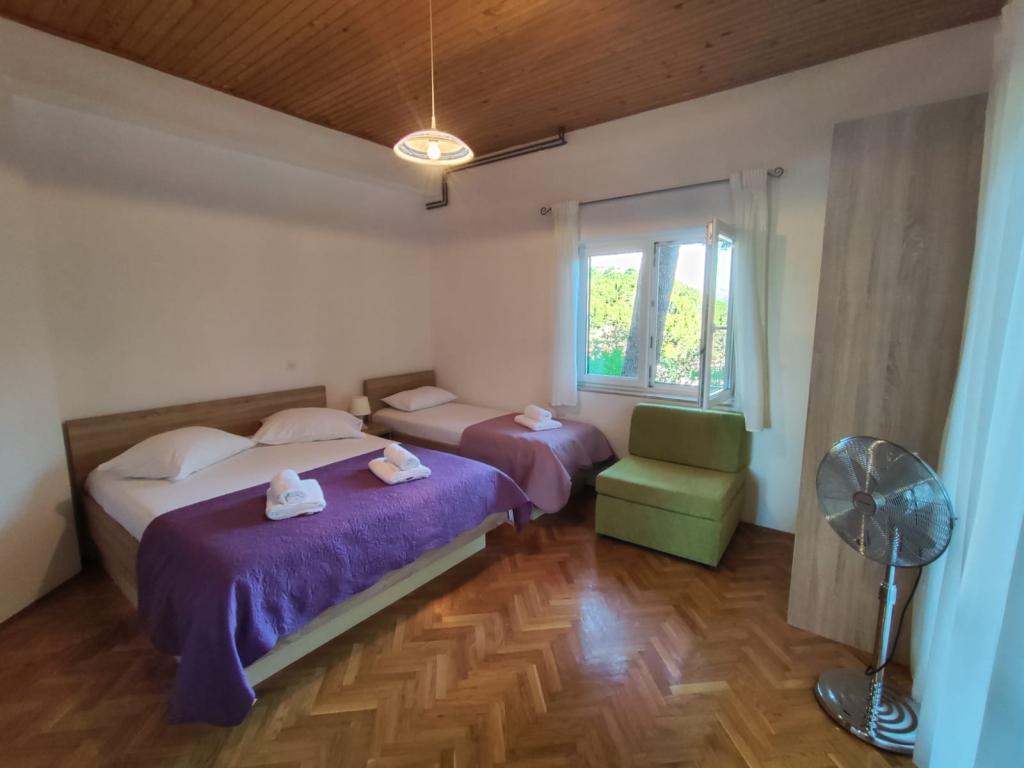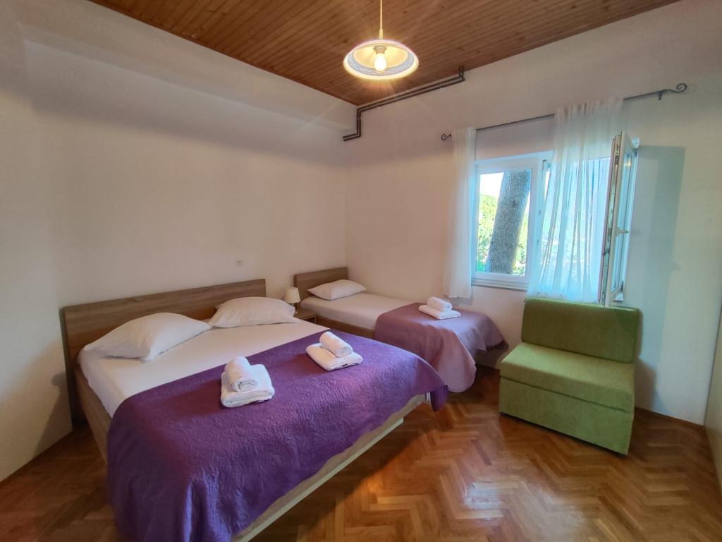 Naše apartmány se nacházejí v klidné části Brely, ideální pro rodinnou dovolenou a úplnou relaxaci. Uhnízděné mezi voňavými borovicemi nabízejí úžasný výhled na křišťálově čisté Jaderské moře a horu Biokovo. Apartmány jsou moderně vybaveny. Každý pokoj má vlastní koupelnu, balkon, klimatizaci a ručníky a ložní prádlo jsou k dispozici. Plně vybavená kuchyně (sporák, lednice, kompletní nádobí a příbory) umožňuje přípravu jídel v příjemné domácí atmosféře. Každý apartmán má prostornou terasu, TV, WiFi, parkoviště a možnost využití grilu pro nezapomenutelné večery u moře. Dům se nachází na kopci, pouhých 100 metrů od oblázkové pláže, ideální ke koupání a opalování. Brela je známá svými přírodními krásami, dlouhou promenádou podél pobřeží a legendárním Brelským kamenem. Kromě toho se v blízkosti nachází řada restaurací s místními specialitami, kavárny u moře a možnosti pro různé sportovní a rekreační aktivity, jako je pěší turistika, cyklistika a vodní sporty. ️