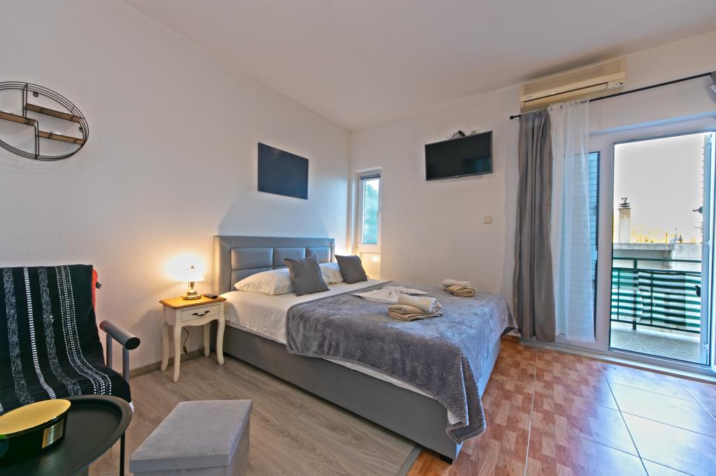Apartmány Hrvoje se nacházejí na vyvýšeném místě v klidné části ulice Stomarica. Vzdálenost od oblázkové pláže je cca 3 min. pěšky nebo 150 m. Na jedné straně domu je výhled na moře a druhý má výhled na horu Biokovo. Nabídka rodiny Jelčić je kvalitní a hosté mohou plně relaxovat v apartmánech a strávit nezapomenutelnou dovolenou. Apartmány uspokojí všechny hosty, kteří chtějí strávit příjemnou dovolenou. Nabídka ubytování zahrnuje apartmány vybavené kuchyňkou, ložnicí, klimatizací, satelitní TV, koupelnou a balkonem. Za domem se nachází zahradní terasa se stoly, kde si hosté mohou odpočinout a zároveň se těší klidné atmosféře s výhledem na moře. K dispozici je také venkovní gril, ale přátelská dáma. Jelcic jim rád pomůže. Parkování je zajištěno.