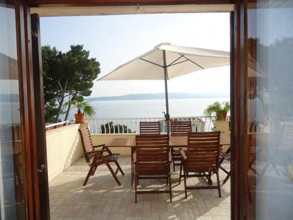 Moderní apartmány se nachází v rodinném domě v Brela. Jen 5 minut chůze od pláže. Terasa 100 m² pro relaxaci a příjemné chvíle při sledování západu slunce vám poskytne nezapomenutelný čas.