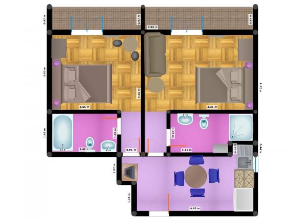 Apartmán pro čtyři osoby se dvěma přistýlkami (45 m2)