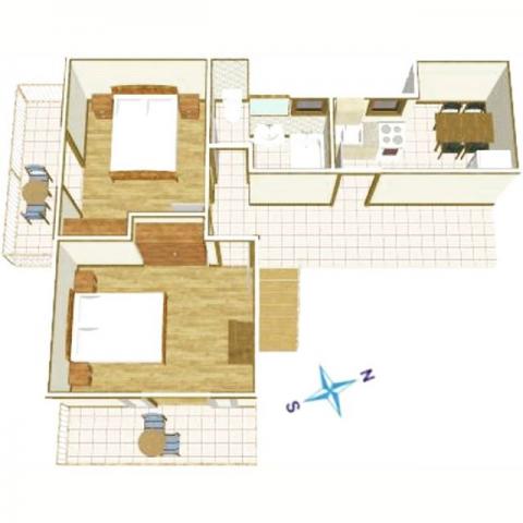 Apartmán pro čtyři osoby s jednou přistýlkou (70 m2)