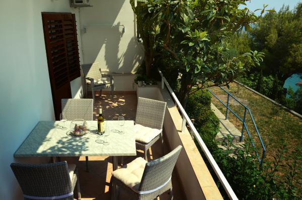 Nádherný prostorný apartmán se spoustou úložných prostorů v pokojích i v koupelnách, úplný sen, obzvláště s dětmi. Apartmán má relativně nové a moderní vybavení, je krásně čistý a klidný. Velmi milý starší manželský pár majitelů, přejeme spoustu let strávených na tak krásném místě. Pravda od auta k apartmánu je to pár schodů dolů (cca 50) a pak ještě od apartmánu k moři (asi 100 schodů) ale naše malé děti 3 a 1 rok to ťapkaly úplně v pohodě. Schodiště je soukromé a pouze pro obyvatele domu. Pláž přímo pod apartmánem kam chodí převážně ti samí lidé. V druhé půlce srpna bylo plno, ale ne přeplněno jako třeba na Punta Rata. Každý má svůj prostor, jen nejobsazenější místa jsou ve stínu. Jedno malé upozornění pro ty, kteří mají větší auto jako my Mercedes Viano, bylo nám hned při příjezdu vytknuto mladou paní \"majitelkou\" že takovým velkým autem se na Brelu nejezdí, protože je zde velký problém s parkováním, takže nám bylo doporučeno jít auto parkovat někam kamsi do kopců na placené parkoviště. K tomu naštěstí nedošlo.. Jinak vřele doporučuji.