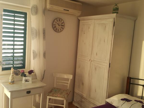V apartmánu jsme byli v první půlce června, fotky naprosto odpovídají, výhled na moře i ze spodního apartmánů je nádherný a k mnoha menším pláži je to opravdu pár minut, k té nejbližší tak 2 Hostitelé jsou velmi milí, komunikace probíhá s rodilou Slovenkou, která zde bydlí. Kuchyň vybavena velmi dobře, nechybělo nám nic, čisté pokoje, kvalitní nábytek i postele, obě koupelny čisté a bez problémů. Jediné dvě možné nevýhody: koupelny se musí větrat směrem k předsíni a ložnici a v zadní části přízemí bydlí staří rodiče (velmi milí!), přičemž izolace není úplně dokonalá - týká se ovšem primárně koupelen a předsíně s kuchyní