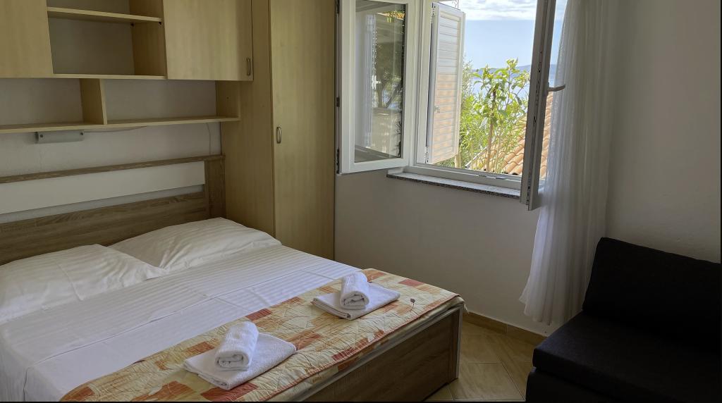Přijeli jsme z dovolené a hned píšeme recenzi. Pokoj: vše odpovídá fotografii. Pokoj je prostorný, čistý, světlý. Malá kuchyňka se vším kuchyňským náčiním a nádobím. Lednička, mikrovlnná trouba, rychlovarná konvice, TV, klimatizace. A výhled z balkonu je nádherný. Bylo velmi příjemné sedět na balkóně večer. Když jsme dorazili, hostitelka nás přivítala a nabídla nám osvěžující nápoje z cesty. Velmi přátelští hostitelé, kteří se postarali o to, abychom se během naší dovolené cítili pohodlně. Samotné apartmány jsou v první řadě, musíte vylézt po schodech. Je to druh každodenního cvičení. Pro starší lidi bude výstup obtížný. Hledali jsme apartmány mimo centrum Brely. Chtěli jsme klid a ten se nám dostal. V této části Brely je klid. Všechno se nám líbilo. Doporučujeme tyto apartmány k relaxaci. A Brelu obecně.
