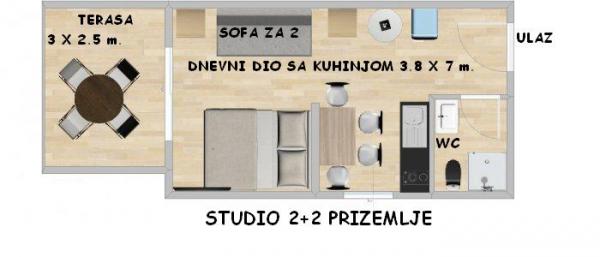 Studio je velmi pěkný a moderní, velmi čisté. Kompletní kuchyňská výbava. V blízkosti pláže a obchodů, klidné lokalitě. Parkování je u domu. Byli jsme s malým dítětem a bylo to fakt super, doporučuji 100%. Hostitelé jsou velmi milí a ochotní.