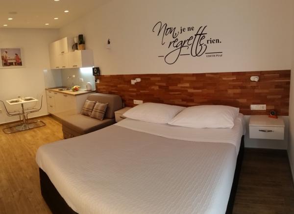 Byt jsme byli v červnu s dcerou. Byty byly pak jen rekonstrukcí. Byt je velmi elegantní, čisté, moderní a plně vybavené. Nebylo třeba žádat nic. Vše bylo postaráno, a ještě více. Apartmány mají terasy s výhledem na moře. V bytě je TV, Wi-Fi a trezor. To, co jsem řekl i přes všechny superlativy pro pohostinství suite a sustretljivost hostitele; něco, co nenajdete jen to! Určitě jeden z nejlepších bytu, kde jsme byli! Vřele doporučuji!