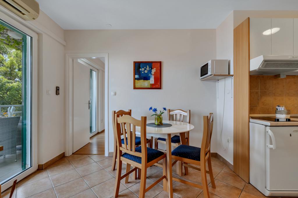 Náš dům se nachází v klidné a zelené části Brely, 50 metrů od moře. Na pláž, která se nachází přímo pod domem, se dostanete po soukromých schodech. Slavná pláž Punta rata se nachází přibližně 500 metrů od domu a do centra města je to asi 10-15 minut chůze krásnou krajinou u moře. Všechny apartmány jsou klimatizované a mají satelitní televizi a připojení k internetu.
