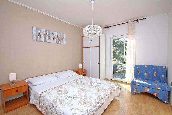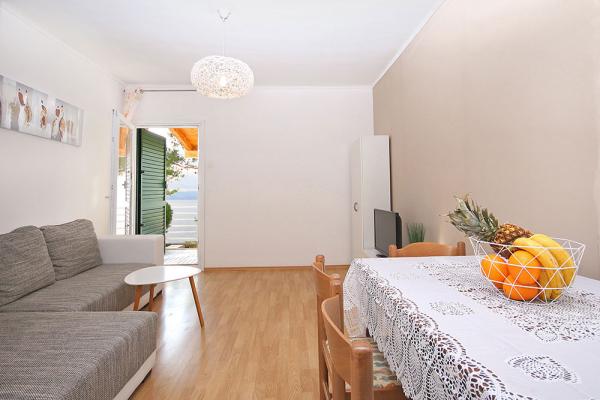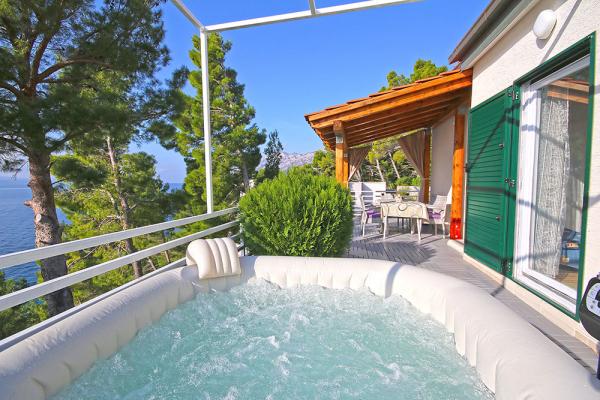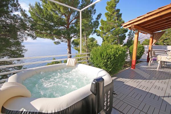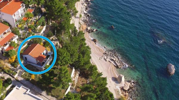 Plně vybavená celý dům v klidné části města Brela. Žádné další hosté ani majitel, samostatný vchod, zcela oplocený poskytuje vynikající soukromí. Dům se nachází pouhých 40 metrů od pláže. Dům je vybaven maximálně 5 osob. Jeden pokoj pro tři osoby a rozkládací pohovka v obývacím pokoji pro dvě osoby. Dům má velkou terasu, jacuzzi a výhledem na oceán. Pod domem je promenáda 6 kilometrů dlouhý a poskytuje romantickou procházku do zvuků vln!