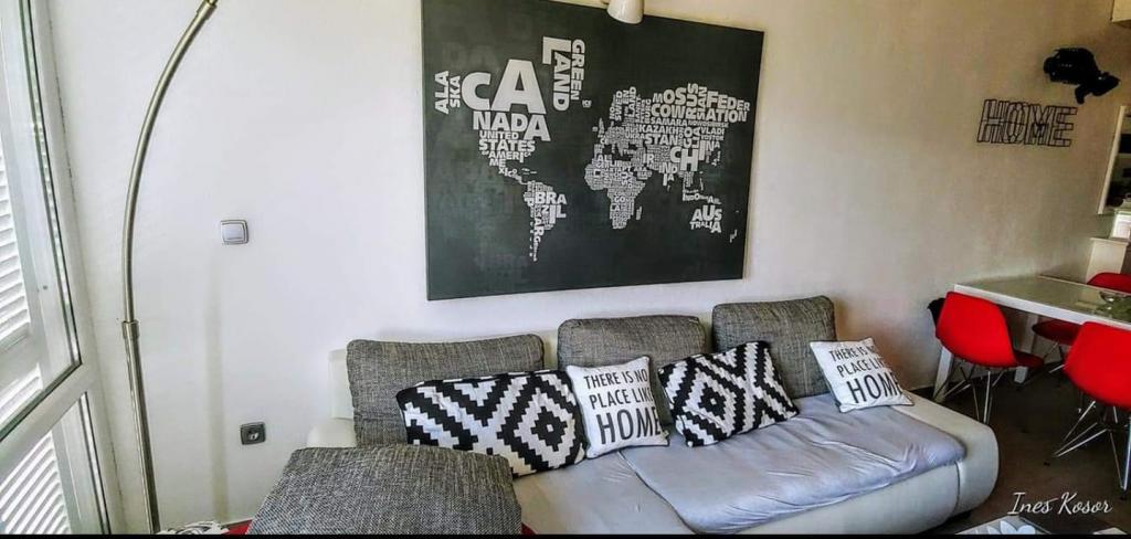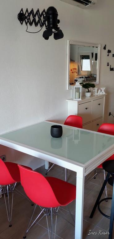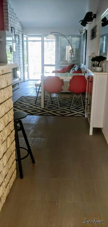 Velikost ubytovací jednotky je 70 m2. Skládá se ze dvou ložnic s manželskou postelí v každém, obývacího pokoje s rozkládací pohovkou, moderně vybavené kuchyně, koupelny a terasy s vířivkou. Budova je moderně zařízená všemi potřebnými spotřebiči a nachází se v klidném prostředí. Centrum malé vesnice Slimena trvá asi 100 metrů. V centru se nachází supermarket pro potraviny, nápoje a další potřeby hosta. Kilometru odtud je restaurace, která nabízí místní i tradiční jídla. Řeka Cetina je také kilometr daleko s krásnou přírodou, ideální pro tělo i duši. Koupání je možné v Cetině a rafting a linie zipu je pro milovníky adrenalinu nezbytnou léčbou. Navštivte nás!