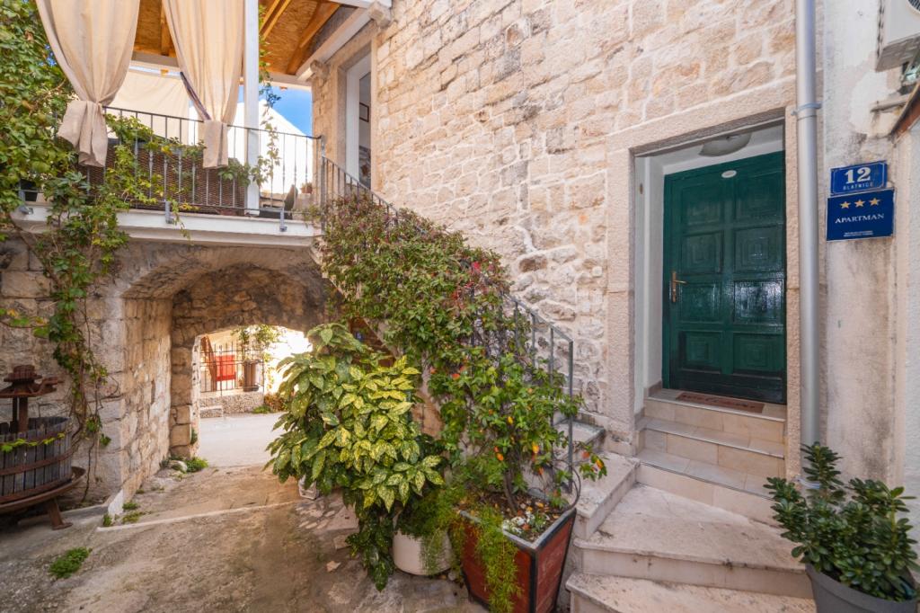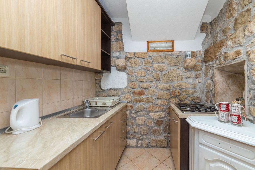 Náš starý kamenný dům zrekonstruován na dva samostatné apartmány. Každý apartmán má vlastní kuchyň, koupelna, ložnice. Byt v prvním patře má balkon s výhledem na moře a malou terasou na druhé straně domu. Dům má moderní vybavení, ale pláž je pouhých 5 metrů a nachází se v malém přímořském městečku Brist. Centrum je 10 minut a větší sousední město má 2 km. Známých turistických destinací, jako je Split, Dubrovník, Mostar, Medžugorje lze navštívit po dobu několika hodin. Brist je na klidném místě u moře ideální pro dovolenou všem, zejména rodiny s malými dětmi.