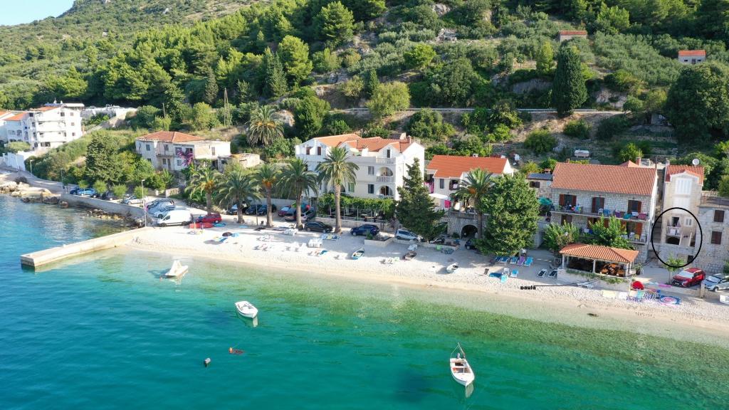 Mezi pevninou a poloostrově Pelješac někdo před staletími zapomenuté kousek ráje. Brist. Malé, klidné a pohostinné místo s několika sty obyvateli, která je od hlavní silnice dolů k moři. Transparentní, jasná a koupala ve slunečním světle. Nad městem jako ochranný val stoupá hrdě svahu s olivovými háji a vzácné divoké zvěře. Ve stínu palem na písečné pláži (lehátka, slunečníky, ..), můžete očekávat, že rodinný brány v Pension Frank, oblečený v kamenné Brač. Dům jako z pohádky, v níž druh a pohostinných lidí od roku 1968 ujaly a hýčkat své hosty. Otevřené ruce a srdce. Převzato dům poslední v Brist (slepé uličky), a také skryté od hluku. To má 10 apartmánů. Dům je terasa s výhledem na Gradec, Hvar a Pelješac. Na terase, přátelští hostitelé své hosty, kteří používají polovinu nebo večeři, kde se podává vynikající dalmatské a středomořské kuchyně. Lízat prsty. Jídlo je připraven opakovaně odměněn olivový olej, které jsou odborníky patří k nejlepším v Dalmácii. S tímto druhem potravy vždy můžete jít na sip domácí brandy a sklenku červeného vína.