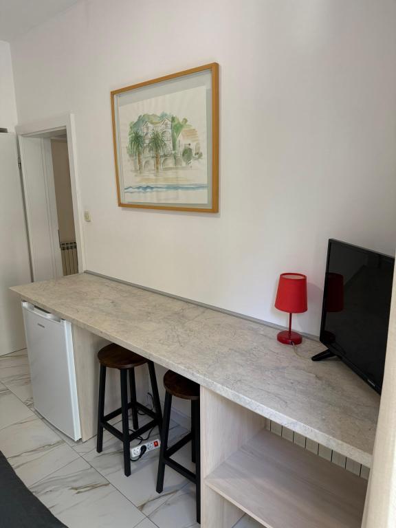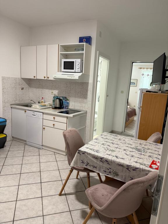 Pobytová taxa není v ceně.Welcome drink, 2 židle, 1 slunečník, poměr odpadky z bytu, nahrazovat špinavé ručníky, utěrky, obecně čistící a měnící se ložní prádlo po 7 dnech nebo podle potřeby ..