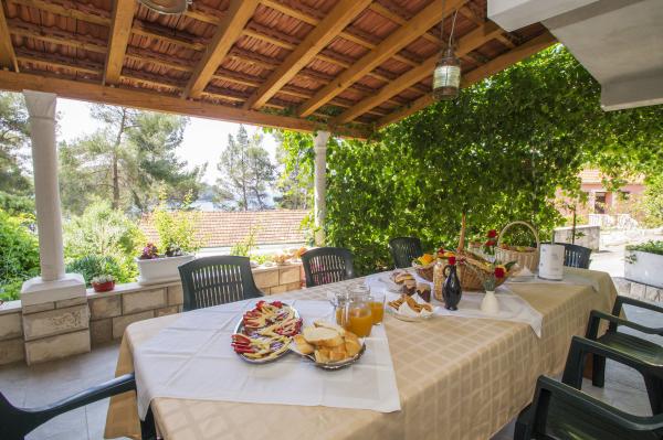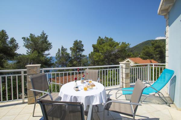 Velmi dobré místo k odpočinku. V apartmánech jsou moje rodina a přátelé, a jsme si pronajali všechny tři byty. Byli jsme velmi potěšeni se servisem a hostitelů. Když jsme dorazili do bytu hostitelé mají nám welcome drink a nabídl chutné koláč. V každém apartmánu jsme byli uvítáni litru vína a šťávy. Později jsme koupili od hostitelů velmi dobrá vína a brandy a velmi chutné domácí marmeláda z fíků. Byli jsme v bytě na konci sezóny, na počátku září, takže tam nebyl dav na pláži, v restauracích, v obchodech ... Apartmány se nacházejí v blízkosti lesa, a tak klidné a tiché, a když spíte od některých pokoje můžete slyšet moře. Apartmány jsou plně vybaveny, čisté a uklizené. Ve velký apartmán pro 8 osob každý pokoj má vlastní sociální zařízení, což je skvělé. Hostitelé mají několikrát připravila velmi chutné večeře. Pláž a moře se nachází v blízkosti apartmánů, a tak jsme často šli na pláž a apartmány. Moře je čisté, přímo pod domem, na začátku jsme měli nějaké problémy, protože tam nejsou žádné schody se dostat dovnitř a ven z moře, ale rychle jsme zvládli techniku. Cestoval jsme celý ostrov, jsme potěšeni zejména města Korčula. Město Korčula je krásná, ale také poměrně drahé. Na konci našich rekreačních hostitelských dal každá rodina malý dárek, malou láhev brandy a levandule, super suvenýr :) To je velmi dobrým místem pro dovolenou !!!