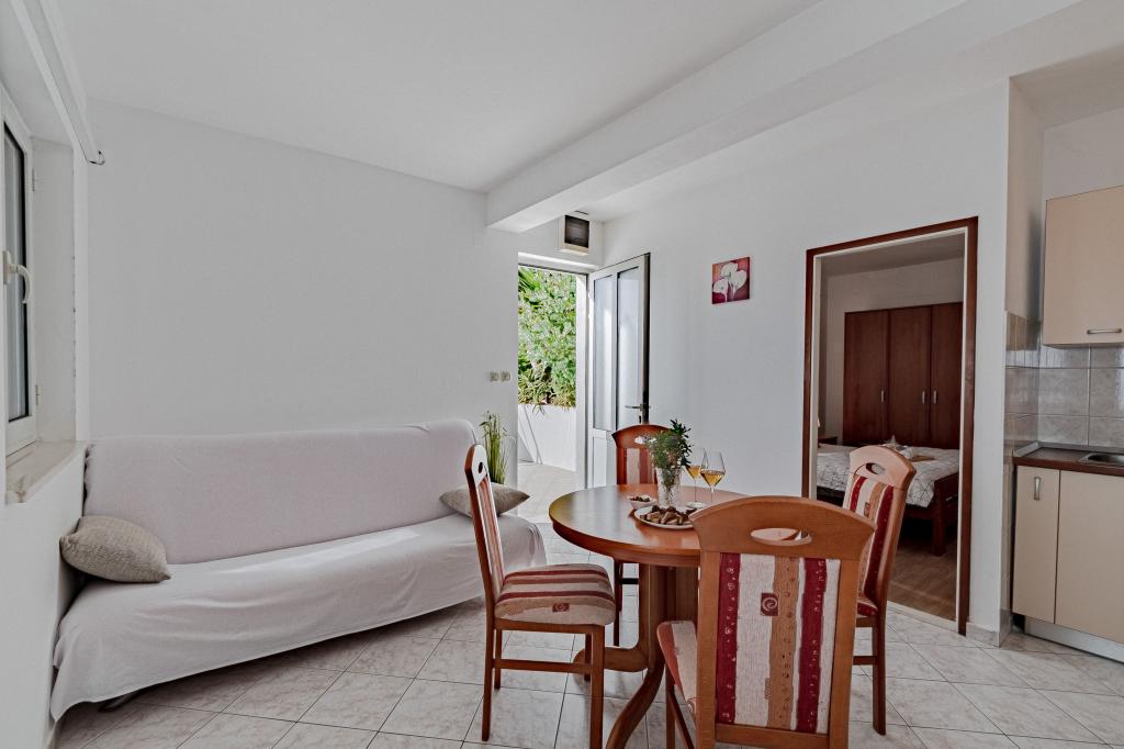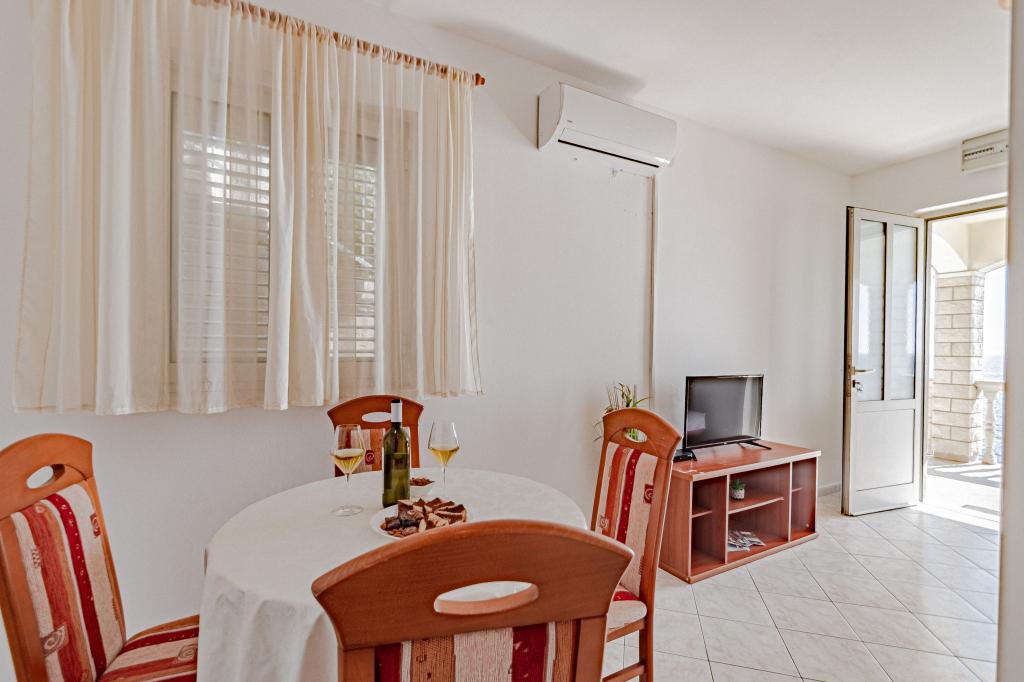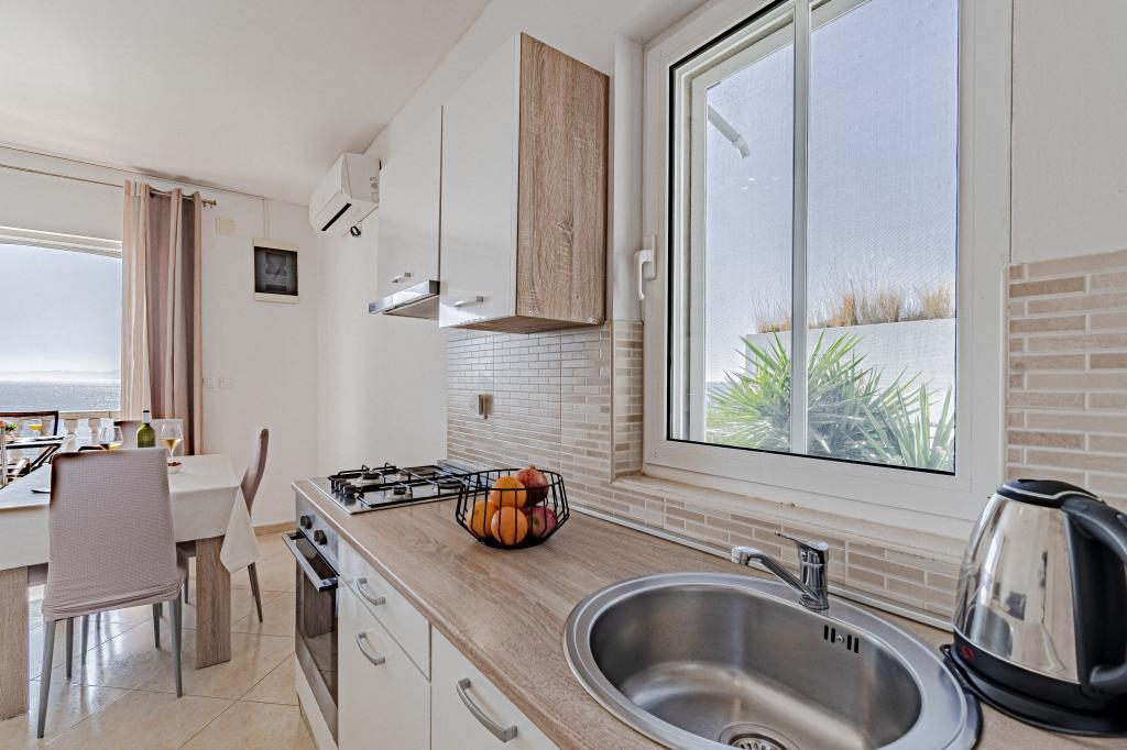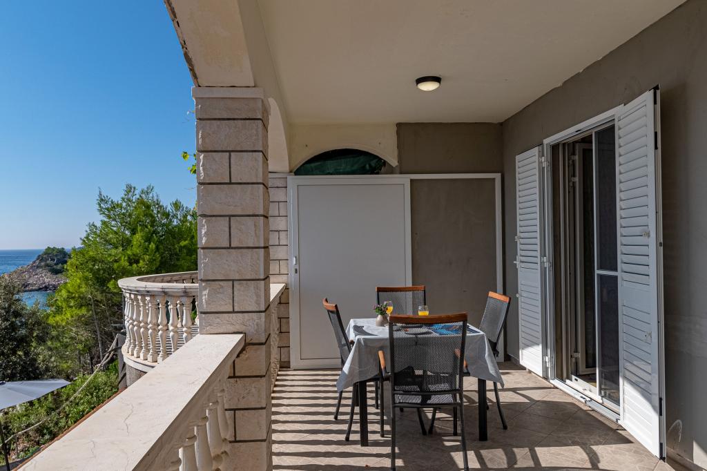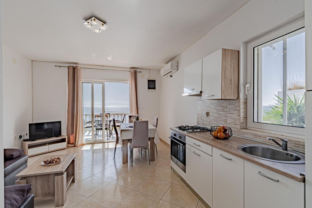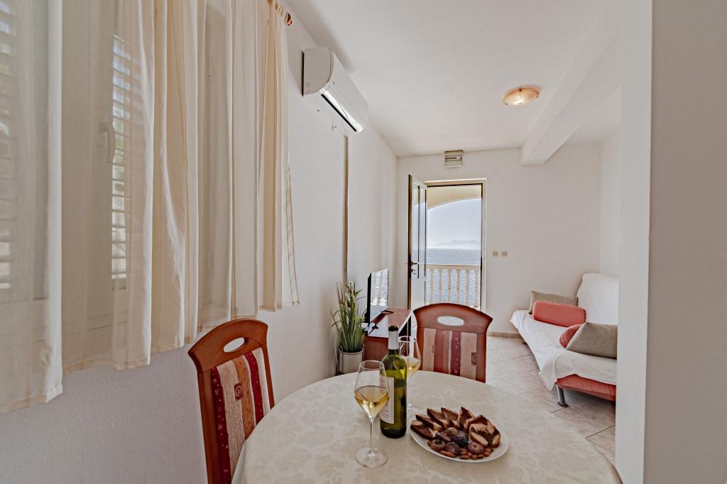 Měli jsme v tomto bytě fantastickou dovolenou. Pohled z terasy je úžasný. Tento apartmán je vhodný pro vás, pokud chcete klid a pokud se vám líbí příroda. Pláž je skalnatá a není vhodná pro malé děti, ale pokud jste dobrý plavec nebo pokud se vám líbí potápění, toto místo je skvělé. Obchod a restaurace jsou vzdáleny 3 km. Muž, který má tento byt, je velmi přátelský, také nám přinesl láhev dobrého vína.
