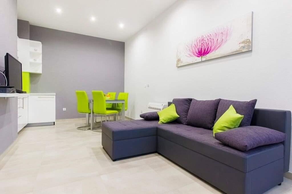 Byt se nachází v klidné části města.Deset minut chůze do centra.Pláž minutu chůze od apartmánu.Má venkovní posezení.