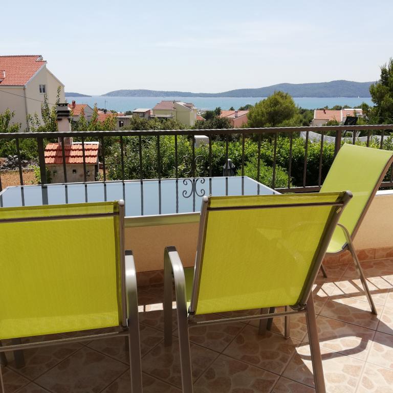 Byt se nachází v rodinném domě. Plně vybavená se skládá z: kuchyně, obývací pokoj, ložnici a koupelnu. Z terasy je výhled na moře a okolní ostrovy. V domě se nachází 5 minut chůze od pláže, 10 minut od centra města Šibenik ...