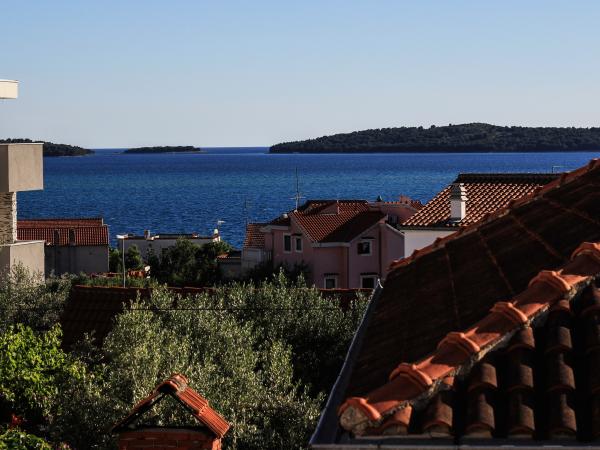 Rodinný dům nově postavený a moderní. Dům je třetí řádek od moře, v klidné čtvrti v Brodarica, 5 km jižně od města Šibenik. Dům se nachází na kopci u moře s krásným výhledem na pláž a okolní ostrovy. Apartmány jsou umístěny v prvním patře v přízemí obývací hostitele, které jsou vždy k dispozici. Dům má dva apartmány s výhledem na moře, ohromující kapacitu 6 -10 lidí. Nemovitost se nachází 1, 30 minut jízdy od pláže pěšky. Vzdálenosti asi 5 min chůze tam jsou četné restaurace a bary, pzzerije, které nabízejí dobré jídlo, nápoje a zmrzlinu. Ve vzdálenosti asi 2-5 km od hotelu jsou různé nákupní centra Dalmare, Lidl, Kaufland, jeřabin, atd ... a dva nejpopulárnější disko běží. Centrum města Šibenik, který je bohatý na kulturní a historické dědictví je 6 km. Přírodní krásy národních parků Krka a je jen asi 15 km a letiště Split 45 km. Ideální místo pro vaši rodinu klidnou a romantickou dovolenou.
