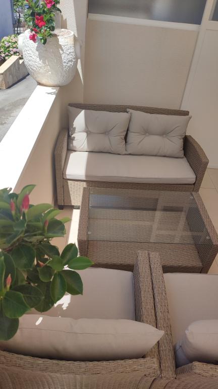 Velmi milí hostitelé, čekající na hosty, mísa se sýrem a domácí šunkou během našeho příjezdu a pobytu Čistý, uklizený byt, 2 minuty chůze od nejbližší pláže a restaurací. Byt nemá přímou terasu, můžete využít terasu v přízemí, která má částečný výhled na moře, ale to je kompenzováno čistotou a laskavostí hostitelů.