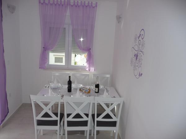 Pobytová taxa je v ceně. Doklad o potvrzení rezervace při rezervaciHosté mají parkování zdarma a bezplatné využívání internetu. V přízemí domu je gril a terasa pro socializaci k dispozici. Všechny apartmány jsou klimatizované. Hosté si welcome drink s chutné sousto dalmatské uzená šunka a sýr. Hosté mají také možnost navštívit naše zemědělské farmy, kde růst místního ovoce a zeleniny, které samy o sobě mohou sbírat a konzumovat.