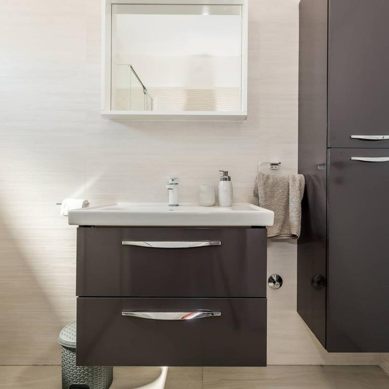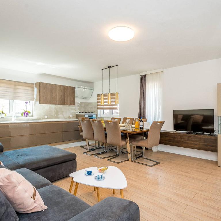 Skvělý nový byt, plně vybavený, velmi čistý a uklizený. Terasa, na které chcete zůstat navždy. (Děti to chtějí také, ale na hřišti vedle domu.) Pokud si přesto přejete jít k moři, jako jsme to udělali (protože to je důvod, proč jsme přišli), pod domem je dobrá pláž (s dalším hřištěm). Nemůžu se dočkat, až se vrátím. Teprve potom budu moudřejší a rezervuji alespoň 10 dní.