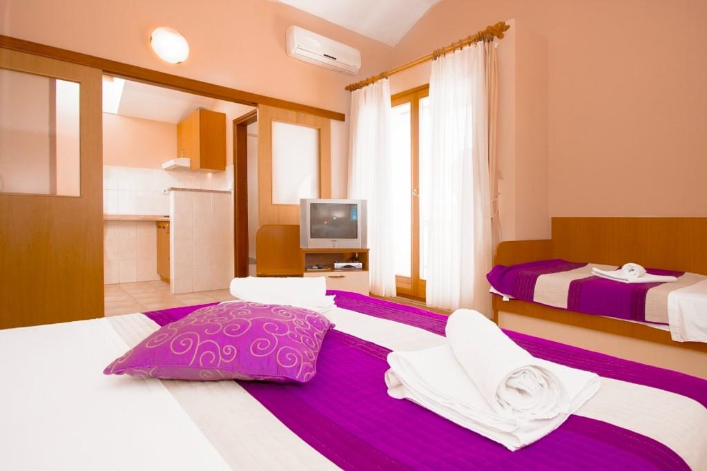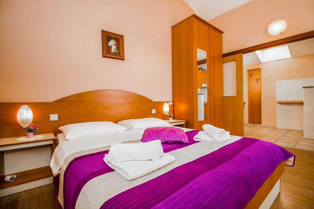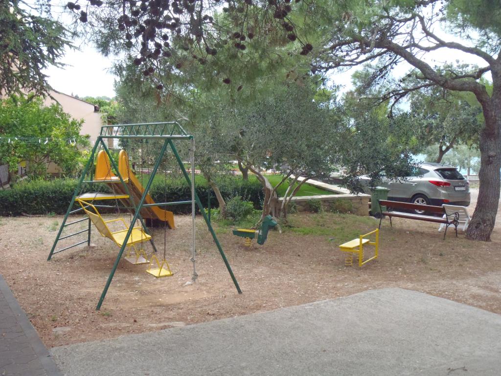 Dům s apartmány a pokoji se nachází u moře nedaleko města Šibenik. Nabízíme opalovací plochu v lese před domem, kde se nachází i dětské hřiště. Parkování pro auta. Využití fitness centra.