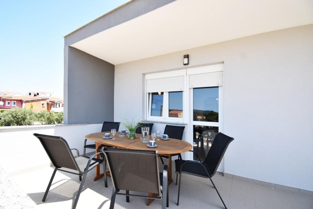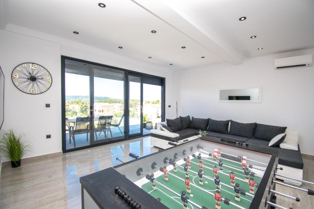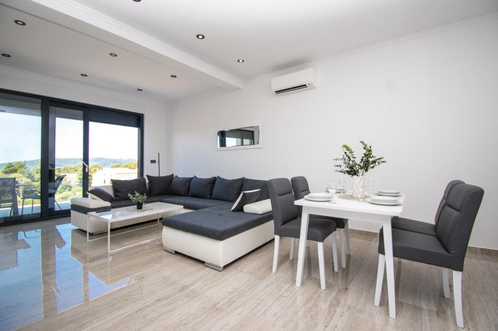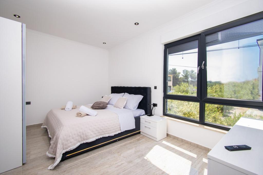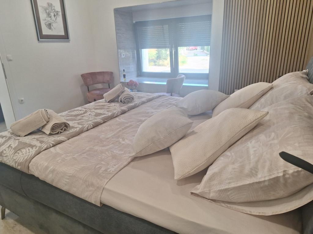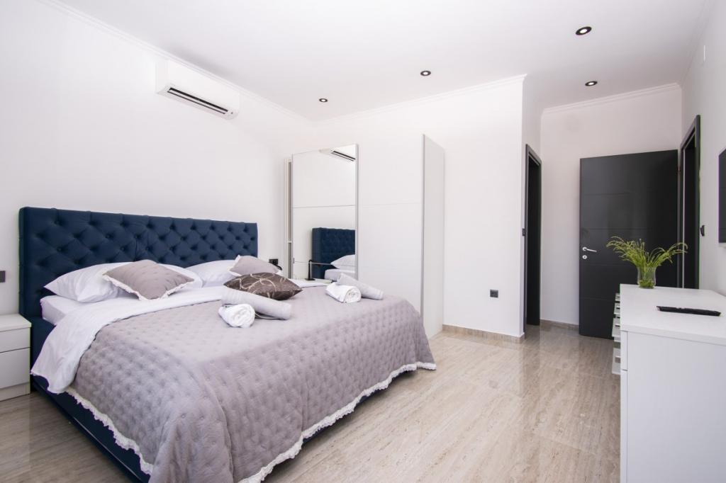 Dům pro 10 osob s bazénem a jacuzzi se nachází v klidné části Brodarica, obklopený spoustou zeleně a květin. První dva byty jsou v přízemí, jeden má 45 m2 a druhý 50 m2. Každý apartmán má ložnici s manželskou postelí, kuchyň, rozkládací pohovku, koupelnu a terasu se stolem a židlemi. Třetí apartmán je 90 m2, nachází se v prvním patře, má dvě velké dvoulůžkové ložnice, velký obývací pokoj, kuchyň, koupelnu a terasu 45 m2 se stolem a židlemi. Je vhodný pro trochu větší rodinu a přátele. Byt je klimatizovaný. Čtvrtý apartmán je luxusně zařízený, cca 100m2, má velký obývací pokoj, plně vybavenou kuchyň, velký pokoj s televizí a klimatizací, v bytě je i sauna. na střeše je vířivka s velkou terasou. každý apartmán má klimatizaci a každý pokoj má také televizi. Bazén je společný. Dům je 5-6 minut chůze od moře. Vedle domu jsou další dva byty, jeden má 110m2 luxusně zařízený a druhý 55m2.