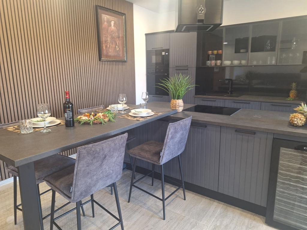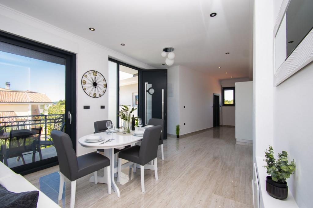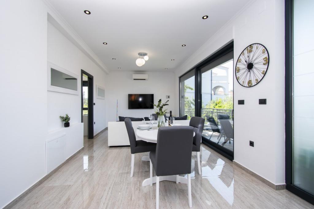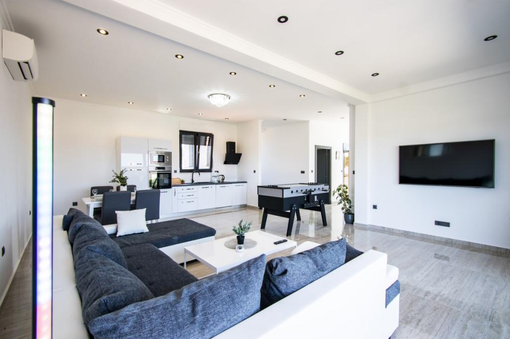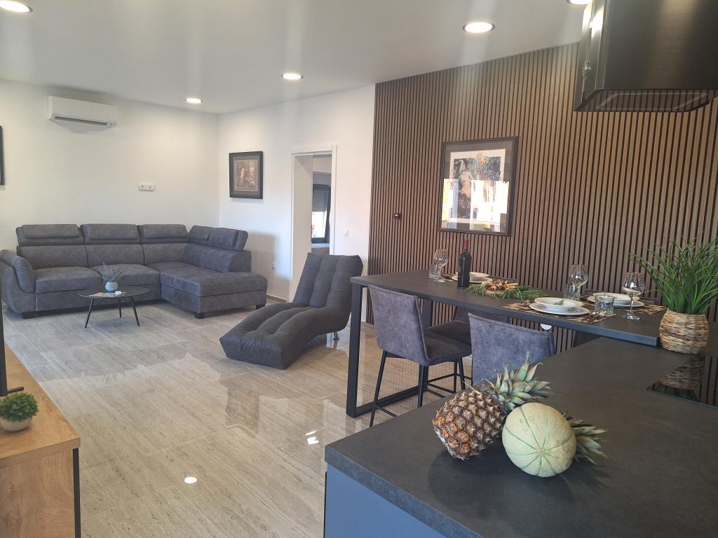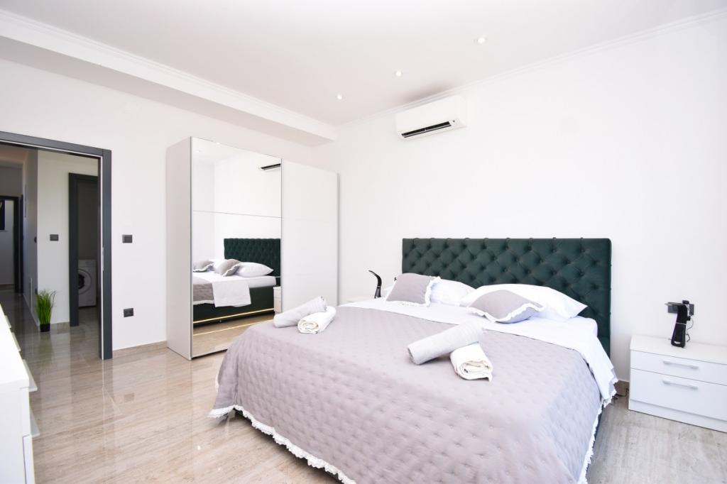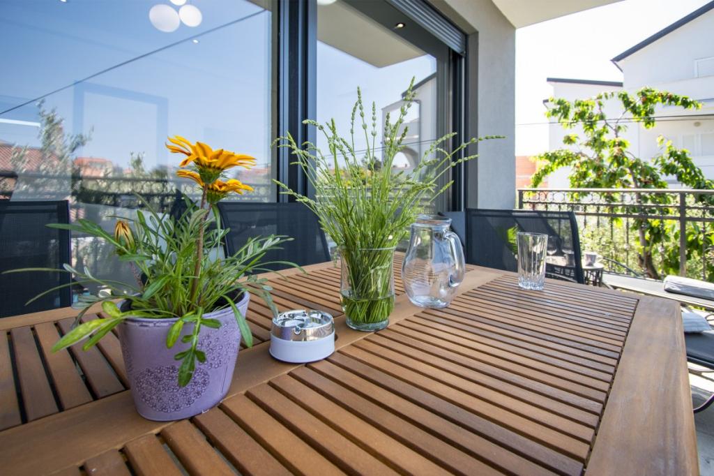Dům pro 10 osob s bazénem a jacuzzi se nachází v klidné části Brodarica, obklopený spoustou zeleně a květin. První dva byty jsou v přízemí, jeden má 45 m2 a druhý 50 m2. Každý apartmán má ložnici s manželskou postelí, kuchyň, rozkládací pohovku, koupelnu a terasu se stolem a židlemi. Třetí apartmán je 90 m2, nachází se v prvním patře, má dvě velké dvoulůžkové ložnice, velký obývací pokoj, kuchyň, koupelnu a terasu 45 m2 se stolem a židlemi. Je vhodný pro trochu větší rodinu a přátele. Byt je klimatizovaný. Čtvrtý apartmán je luxusně zařízený, cca 100m2, má velký obývací pokoj, plně vybavenou kuchyň, velký pokoj s televizí a klimatizací, v bytě je i sauna. na střeše je vířivka s velkou terasou. každý apartmán má klimatizaci a každý pokoj má také televizi. Bazén je společný. Dům je 5-6 minut chůze od moře. Vedle domu jsou další dva byty, jeden má 110m2 luxusně zařízený a druhý 55m2.